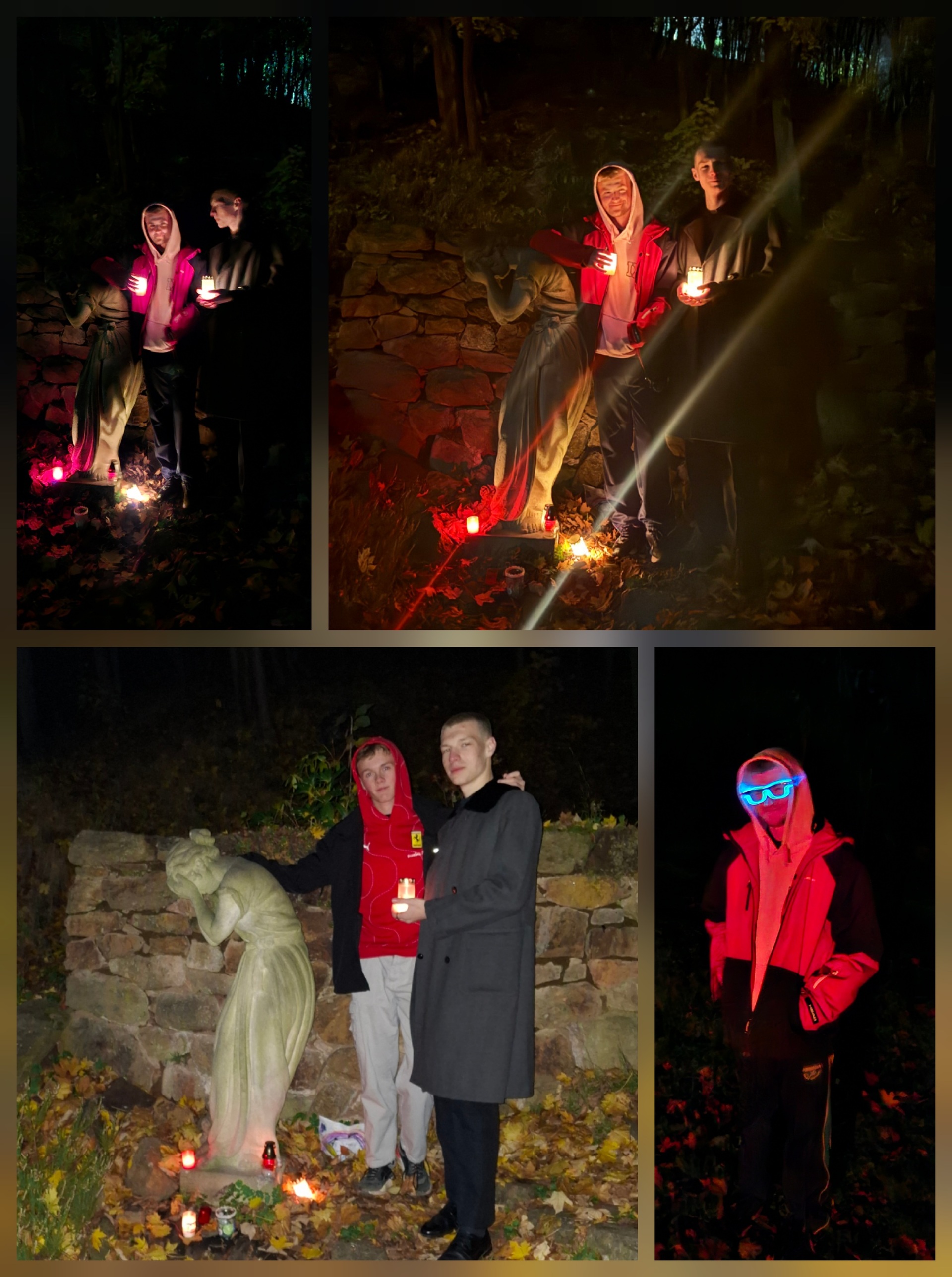 Společně jsme se vydali stezkou přes osvětlený zámek, schody mrtvých a hřbitov - kde jsme zapálili svíčku, jako vzpomínku na naše blízké - a pokračovali jsme dál k plačící Anně a temnou lesní stezkou se vydali zpět. Byla to pěkná večerní procházka.