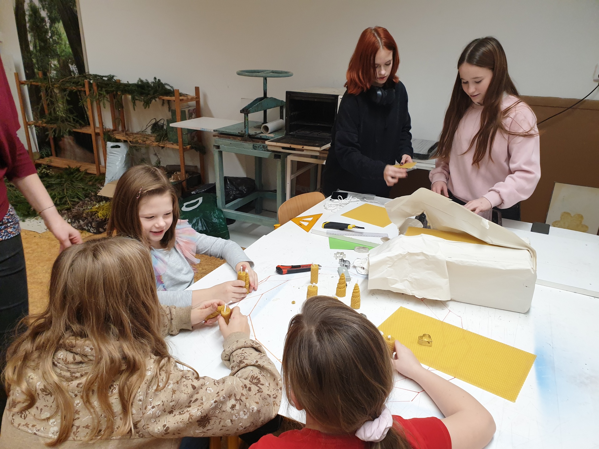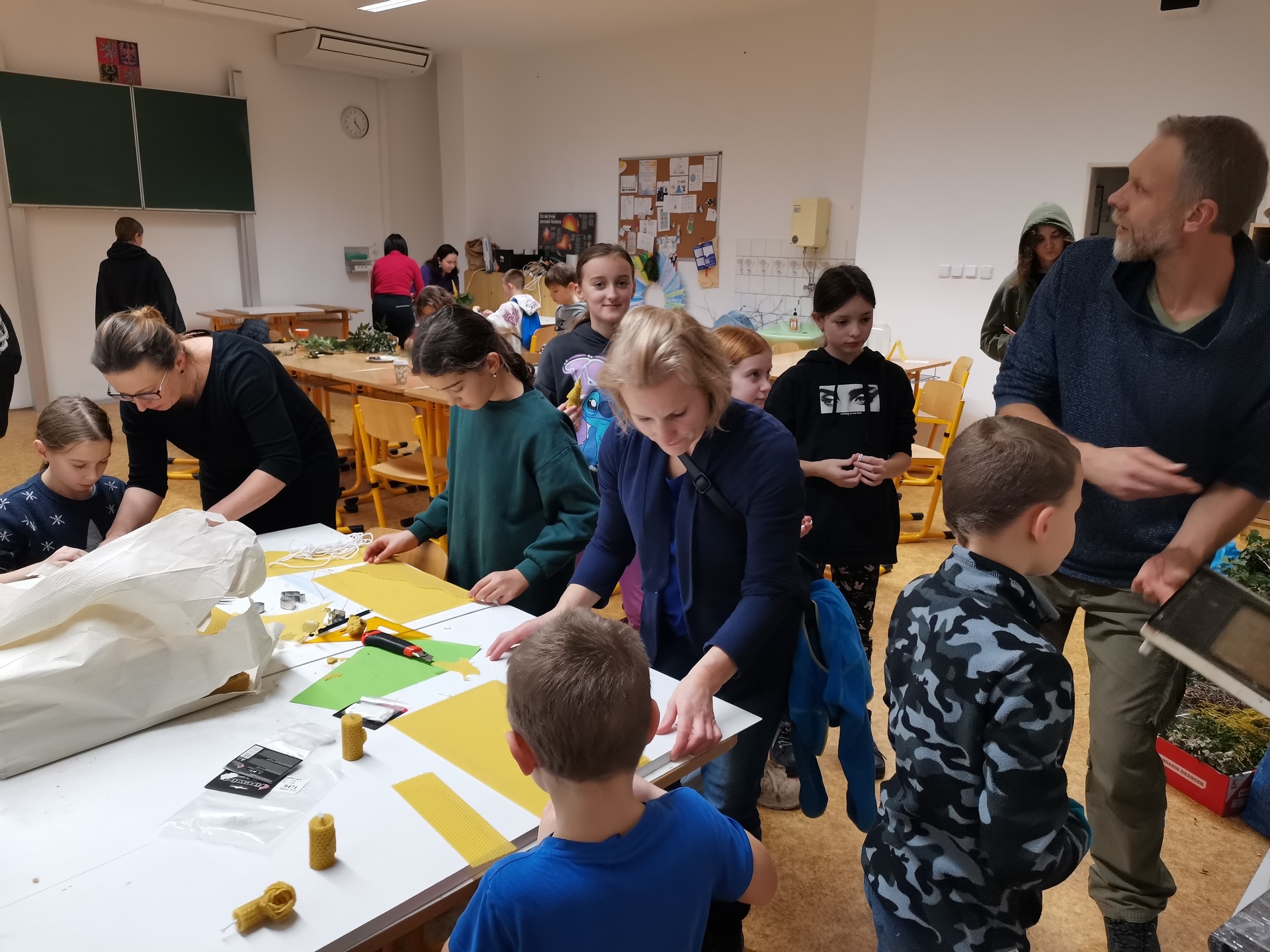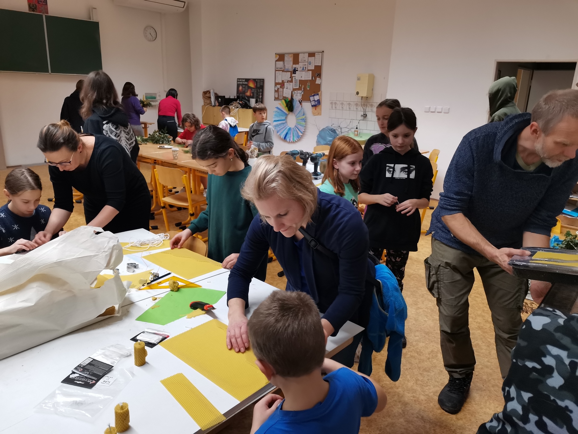 Účast na dílnách byla hojná, atmosféra skvělá, příchozí vytvořili spoustu krásných dekorací nejen na vánoční stůl. Nově jsme přidali vlastnoruční výrobu svíček ze včelího vosku.