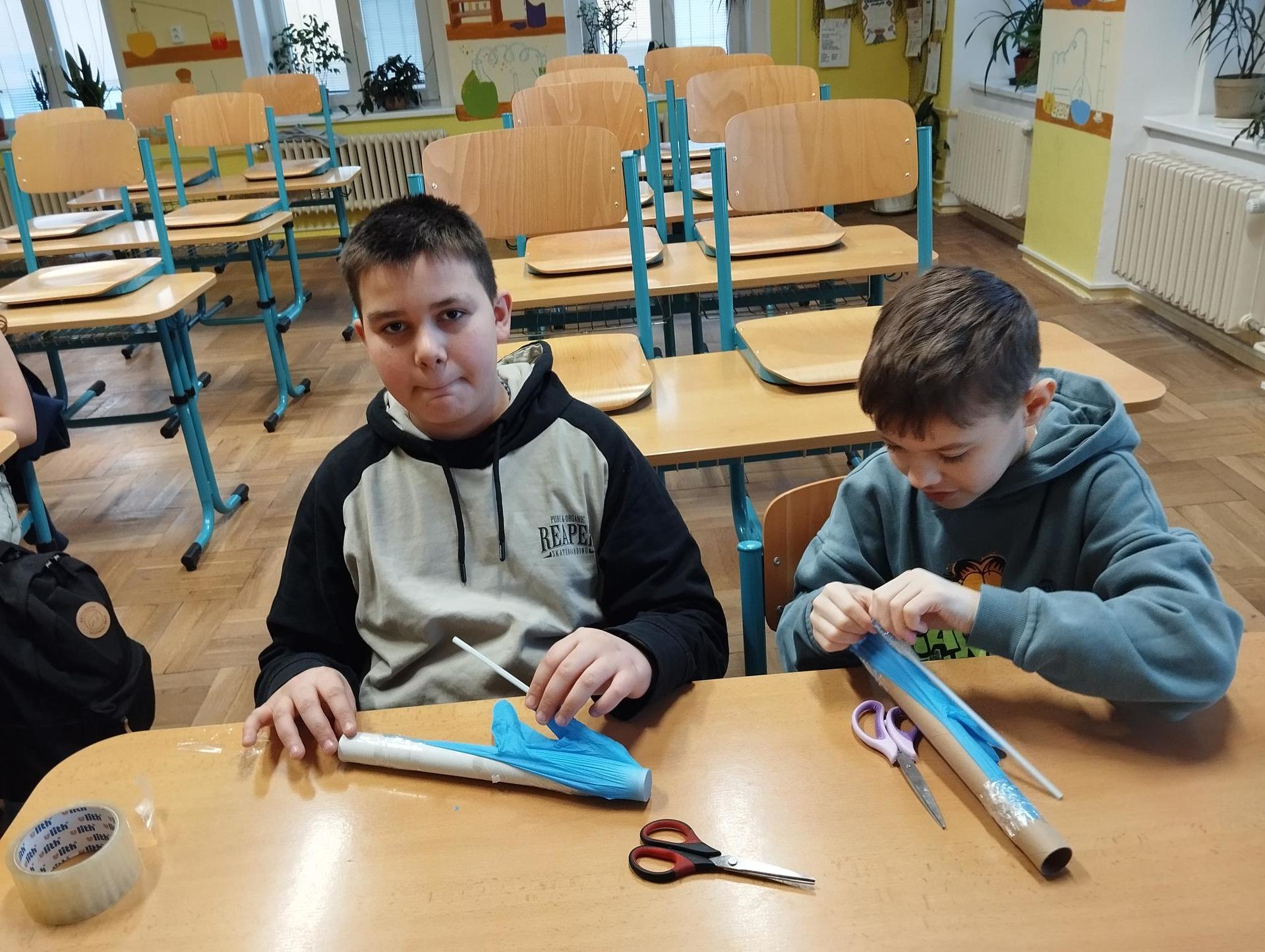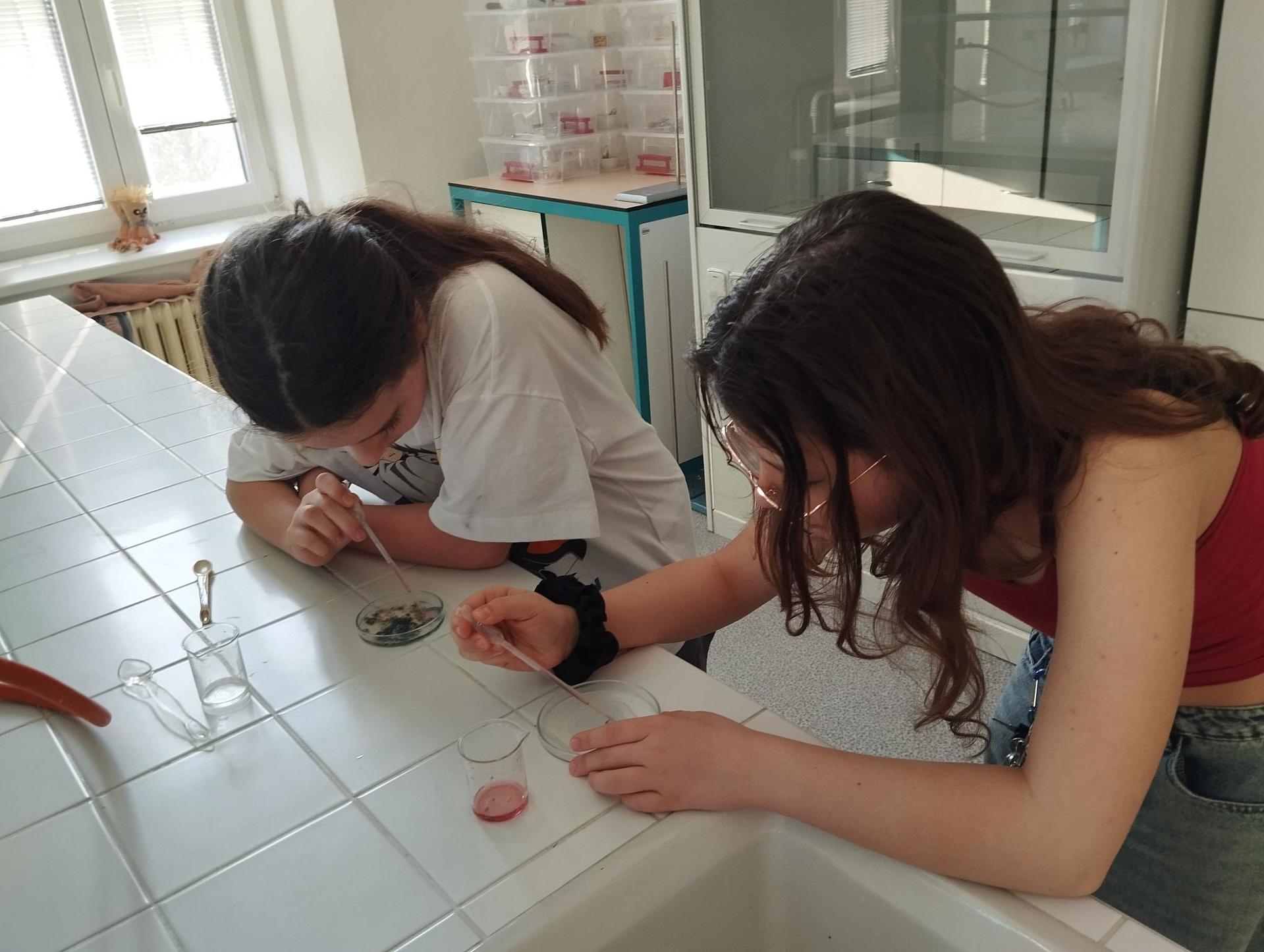 Protože každý žák měl jinou délku a průměr ruličky, vznikaly ve výsledku různě hluboké tóny. Ve druhé části kroužku si žáci vyzkoušely kouzlo chemické reakce, při které dotykem kapek 2 barevných roztoků vznikl nový roztok třetí barvy. Děti tak mohly podpořit svou kreativitu vytvořením různých barevných obrazců na Petriho misce.