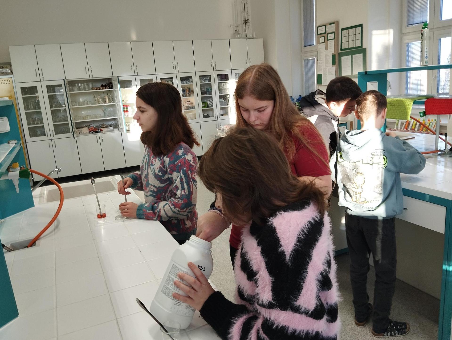 Ve středu 4. března 2026 se uskutečnil projektový den Experimenty bez hranic, jehož cílem bylo propojit spolupráci mezi nejmladšími a téměř nejstaršími žáky školy. Tento projekt byl finančně podpořen nadací Experientia, která v rámci programu Bezva chemie pomáhá zatraktivňovat výuku chemie a jiných přírodních věd ve školách.