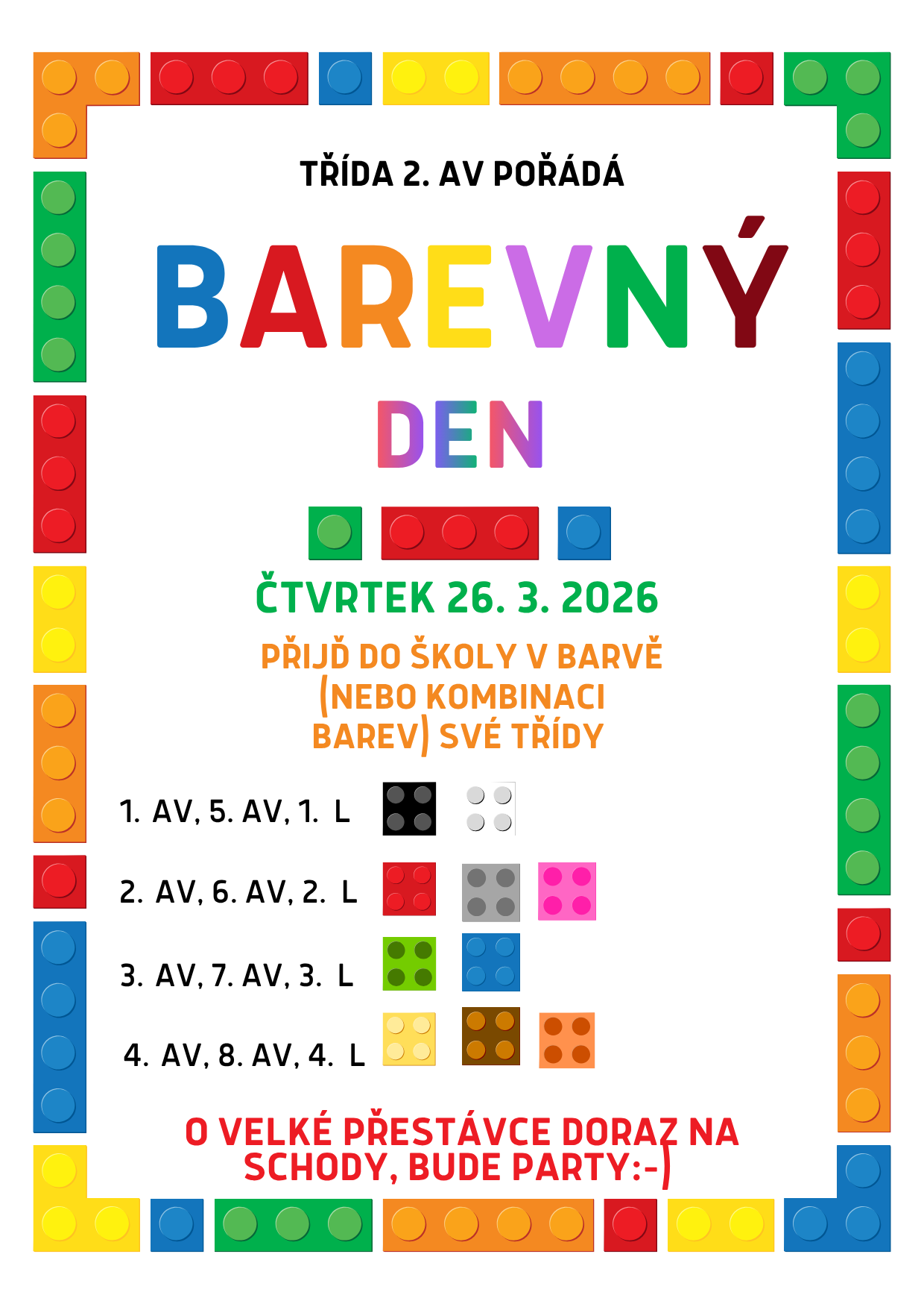 Včerejší šedivý den jsme si rozzářili. Všechny ročníky měly dané barvy či kombinace barev a podle nich ladily své outfity. Podívejte se, jak se jim to povedlo.