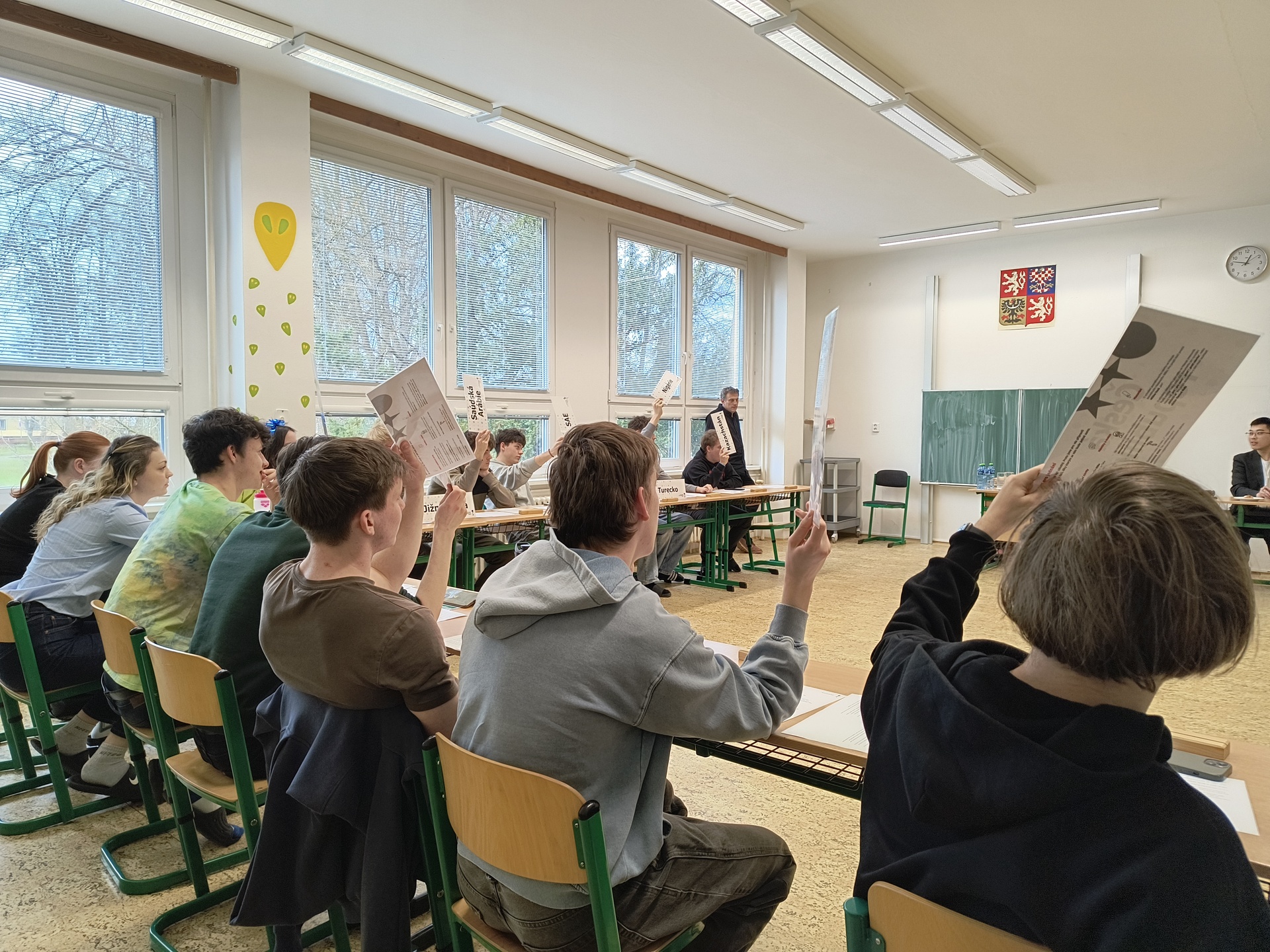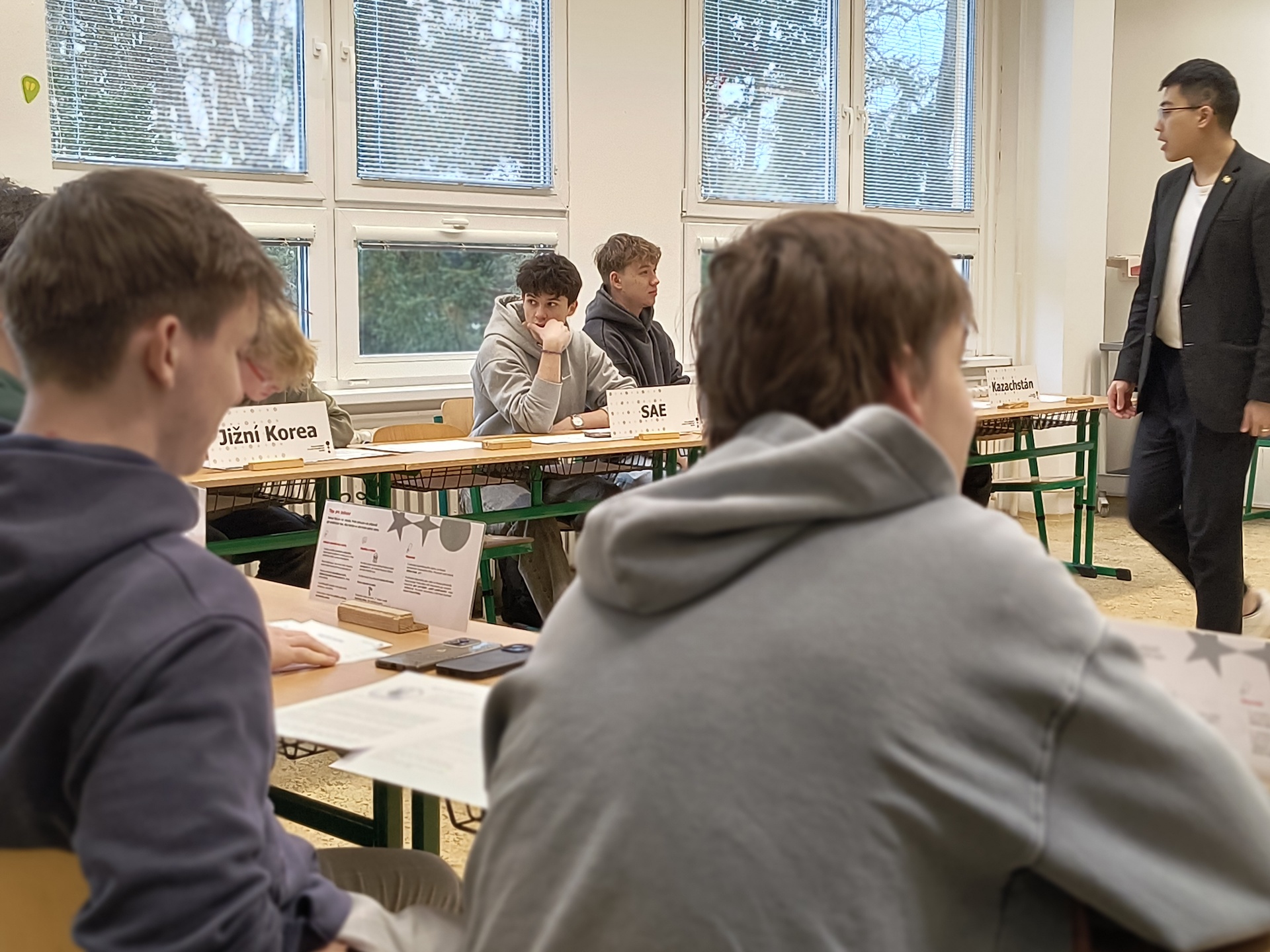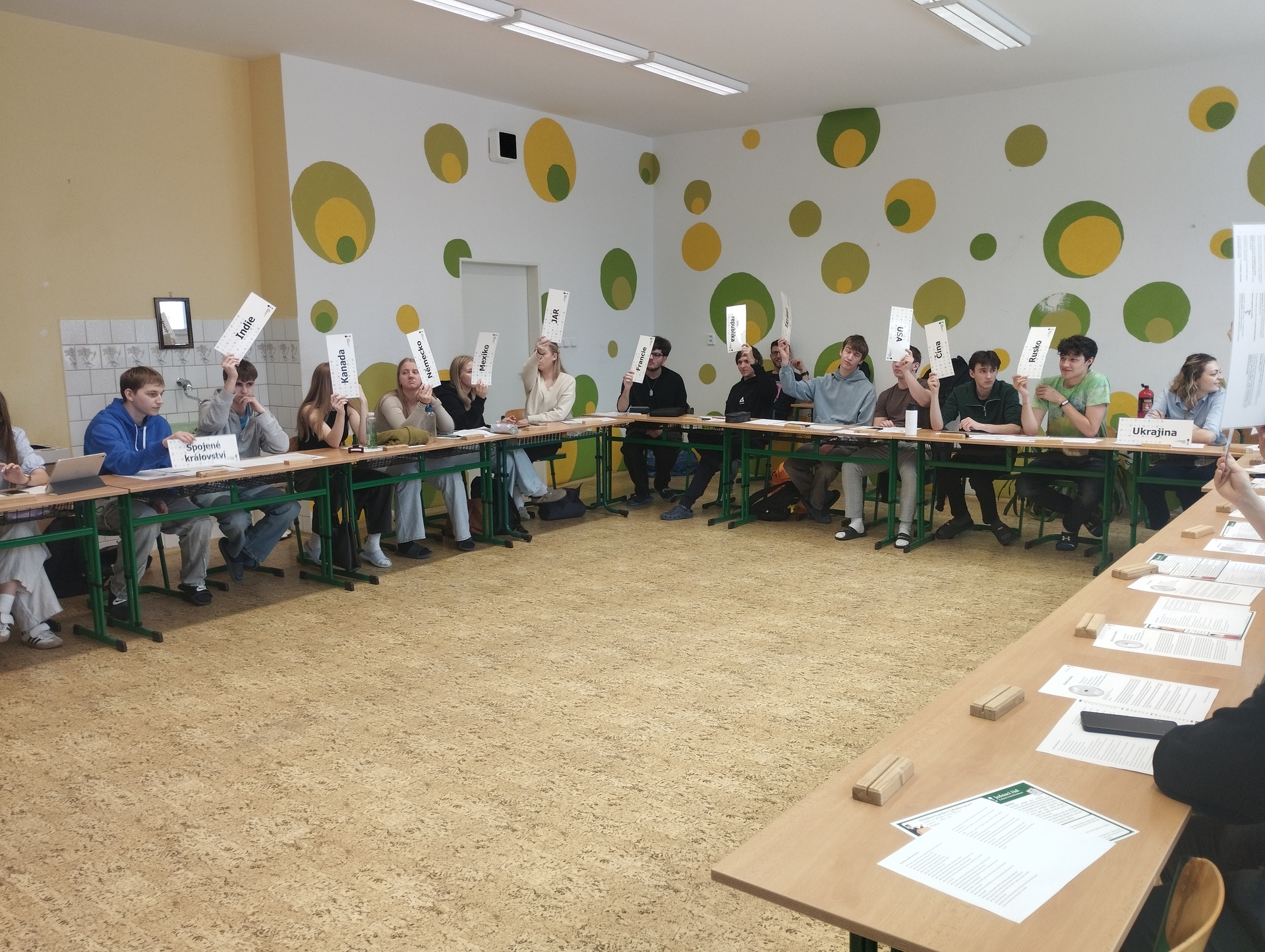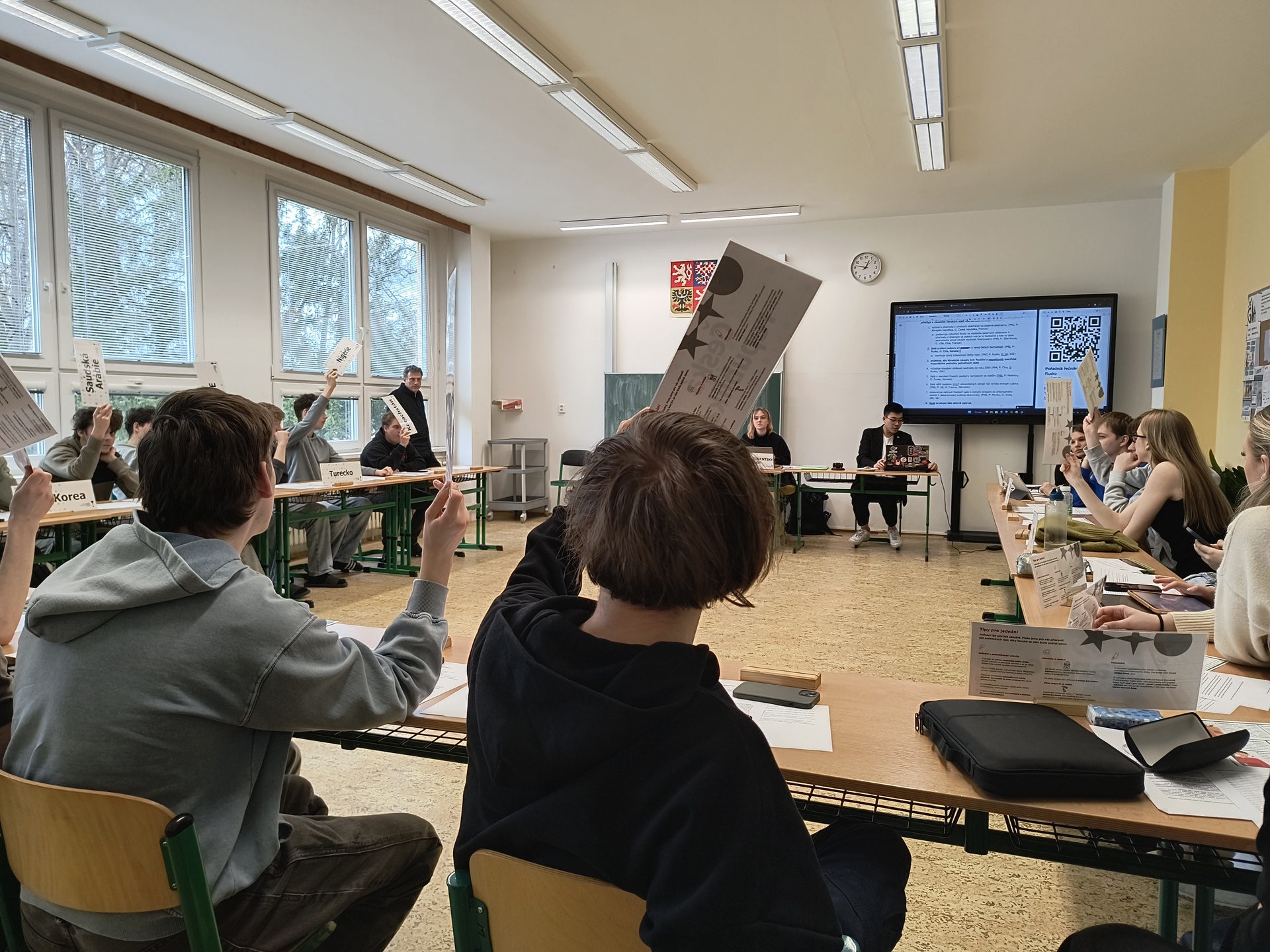 Přesně takový obrat dokázali navodit vysokoškoláci z Pražského studentského summitu, kteří do školy přijeli se simulací konference COP UNFCCC – tedy Konference smluvních stran Rámcové úmluvy OSN o změně klimatu. Žáci se rozdělili do rolí zástupců jednotlivých států, navrhovali body rezoluce, hledali kompromisy, čelili pozměňovacím návrhům a nakonec hlasovali o výsledném textu. Od prvotní opatrnosti ke skutečnému diplomatickému provozu – přesně tahle proměna dělá z podobných akcí víc než běžnou výuku.