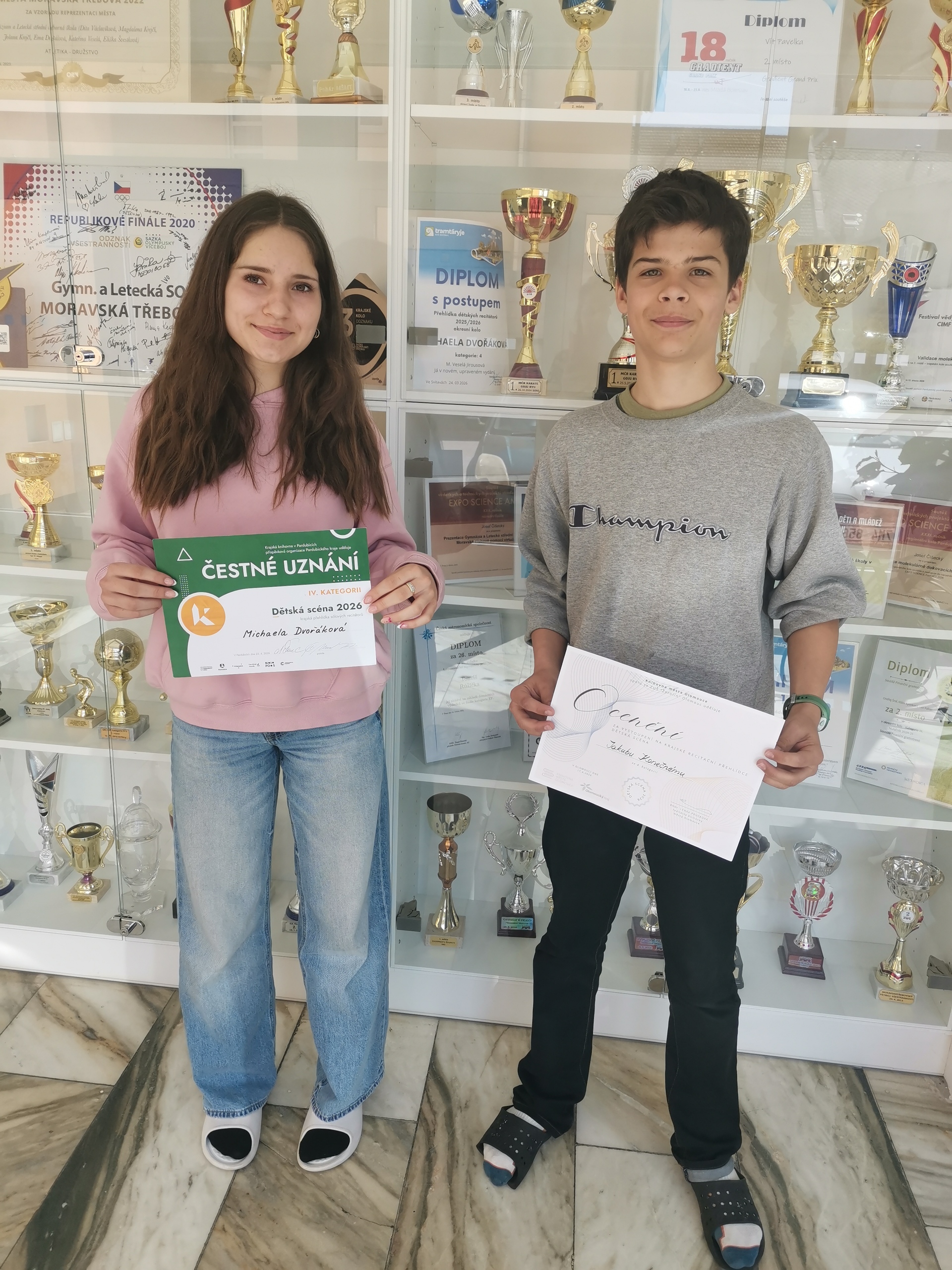 Minulý týden se stejné přehlídky, tentokrát v rámci Olomouckého kraje, zúčastnil také Jakub Konečný z tercie. I on obdržel od poroty čestné uznání.