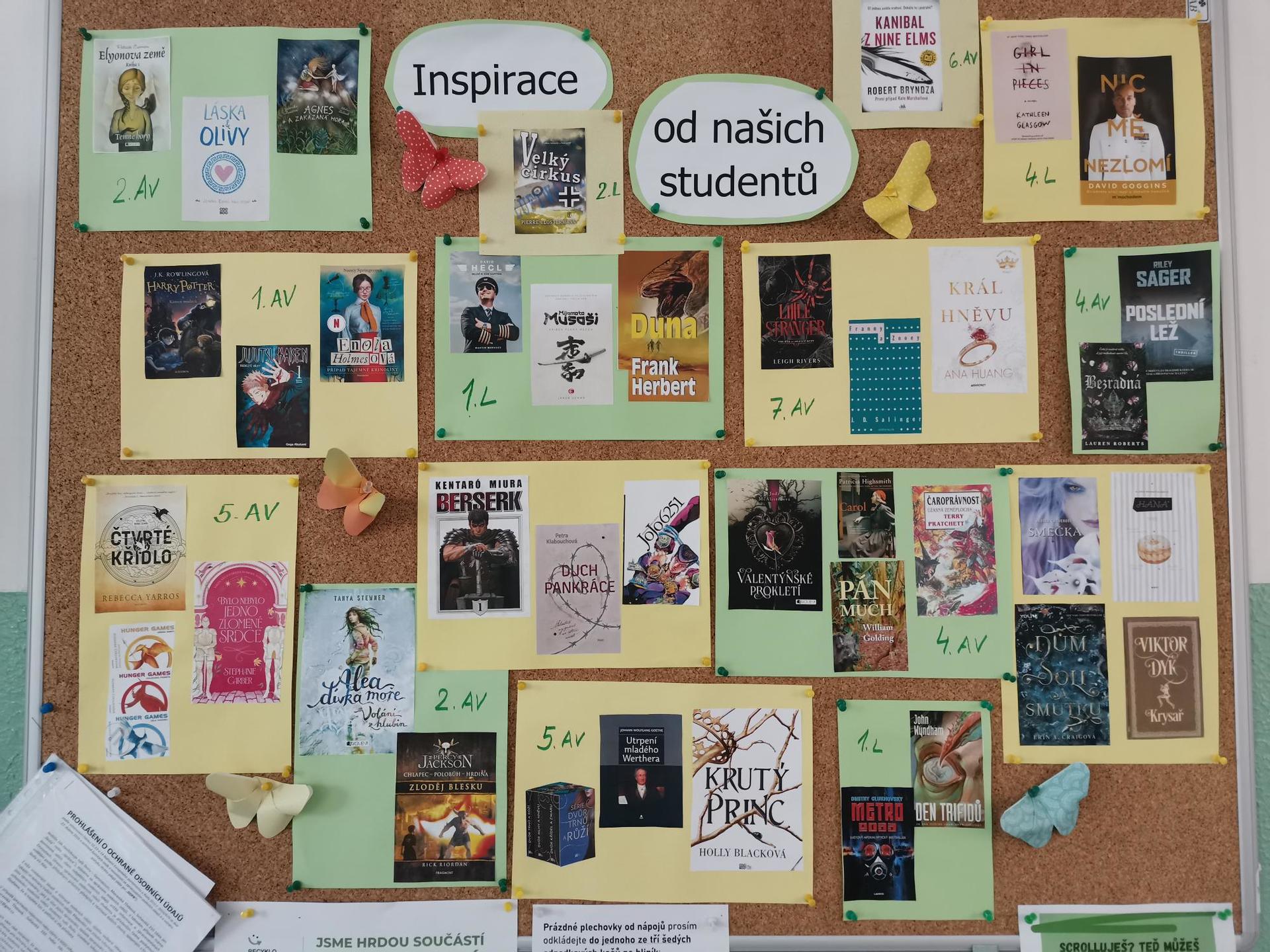 Inspirace ale přichází i od samotných studentů. V březnu sdíleli své knižní tipy pedagogové a nyní se přidali žáci napříč ročníky.