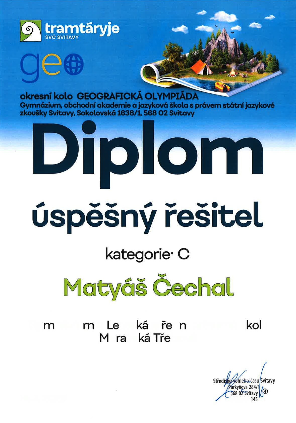 Soutěž je velmi náročná a vyžaduje široký rozhled i dobré orientační schopnosti. Ondra si proto zaslouží velké uznání. Už samotná účast mezi nejlepšími v kraji je skvělým výsledkem. Nabral cenné zkušenosti a věříme, že je zúročí příště.
