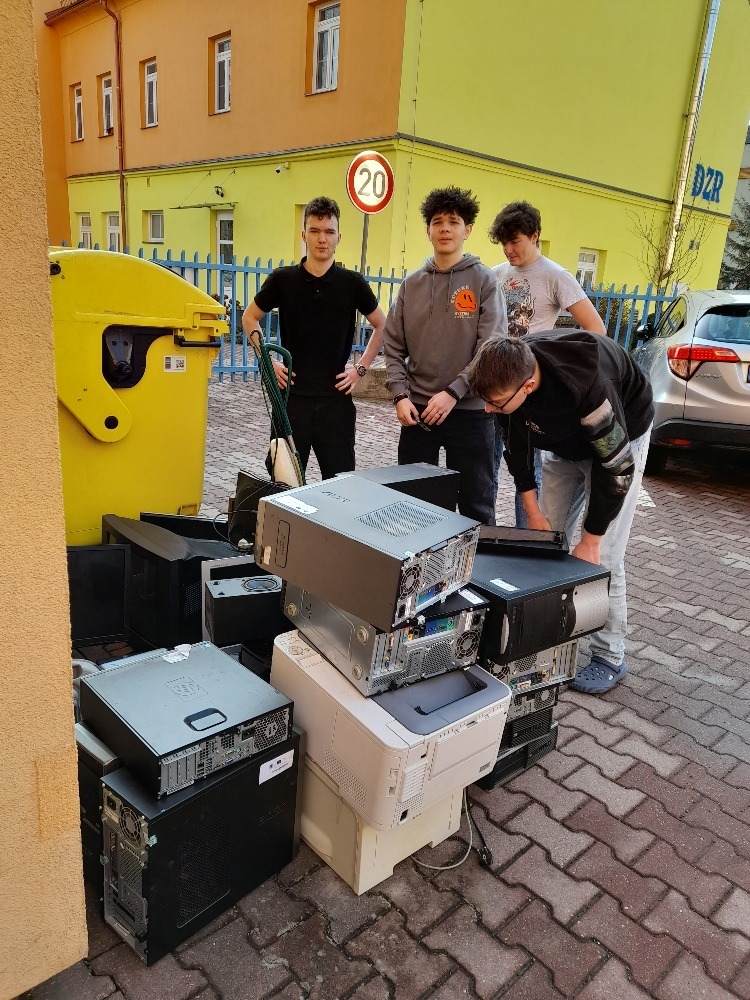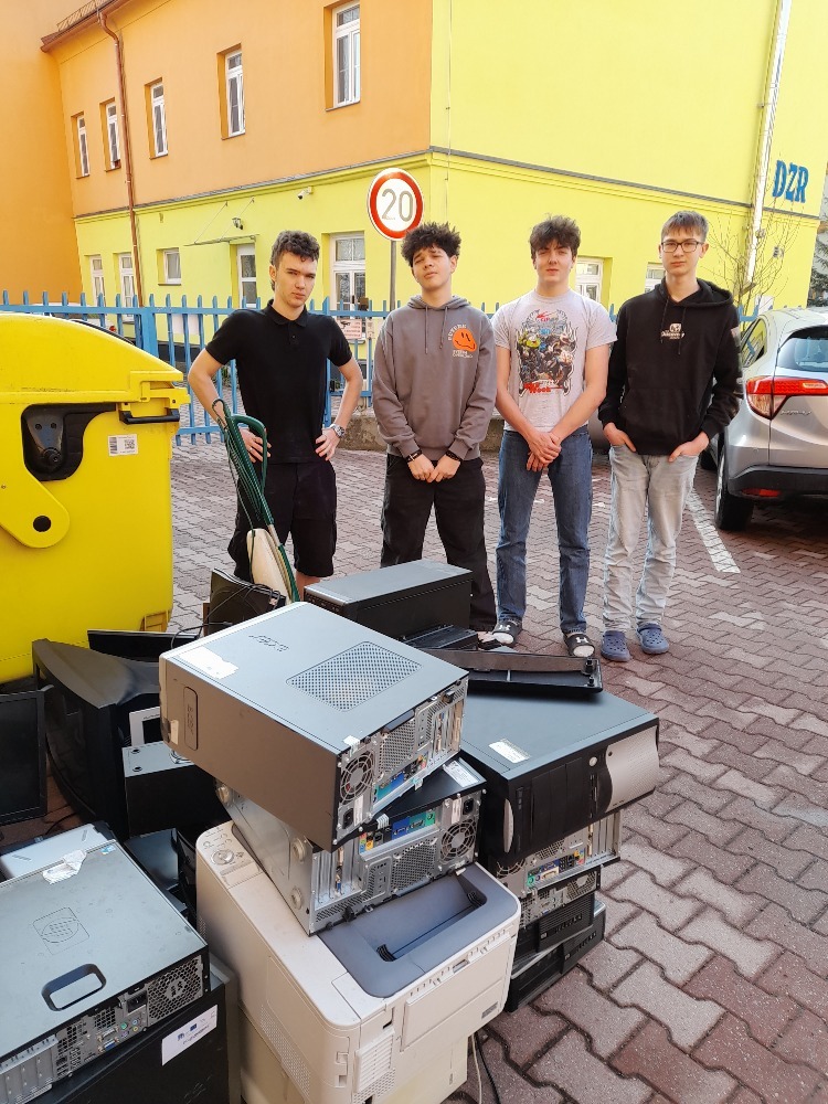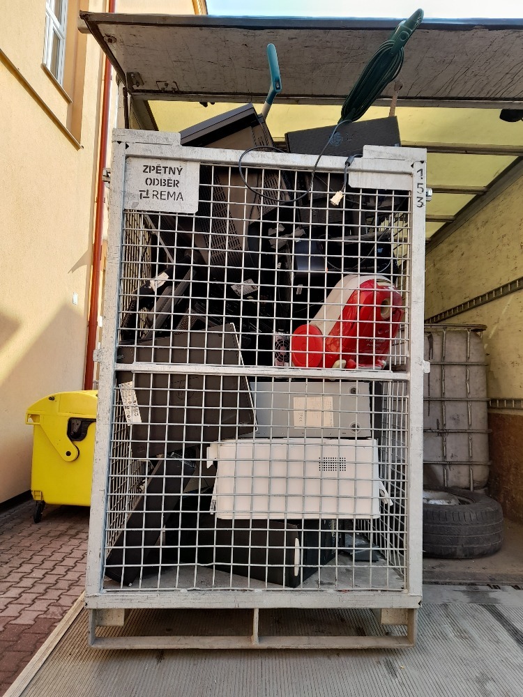 Chlapci z 1. L během 8 minut připravili k odvozu 300 kg elektroodpadu. Děkujeme.