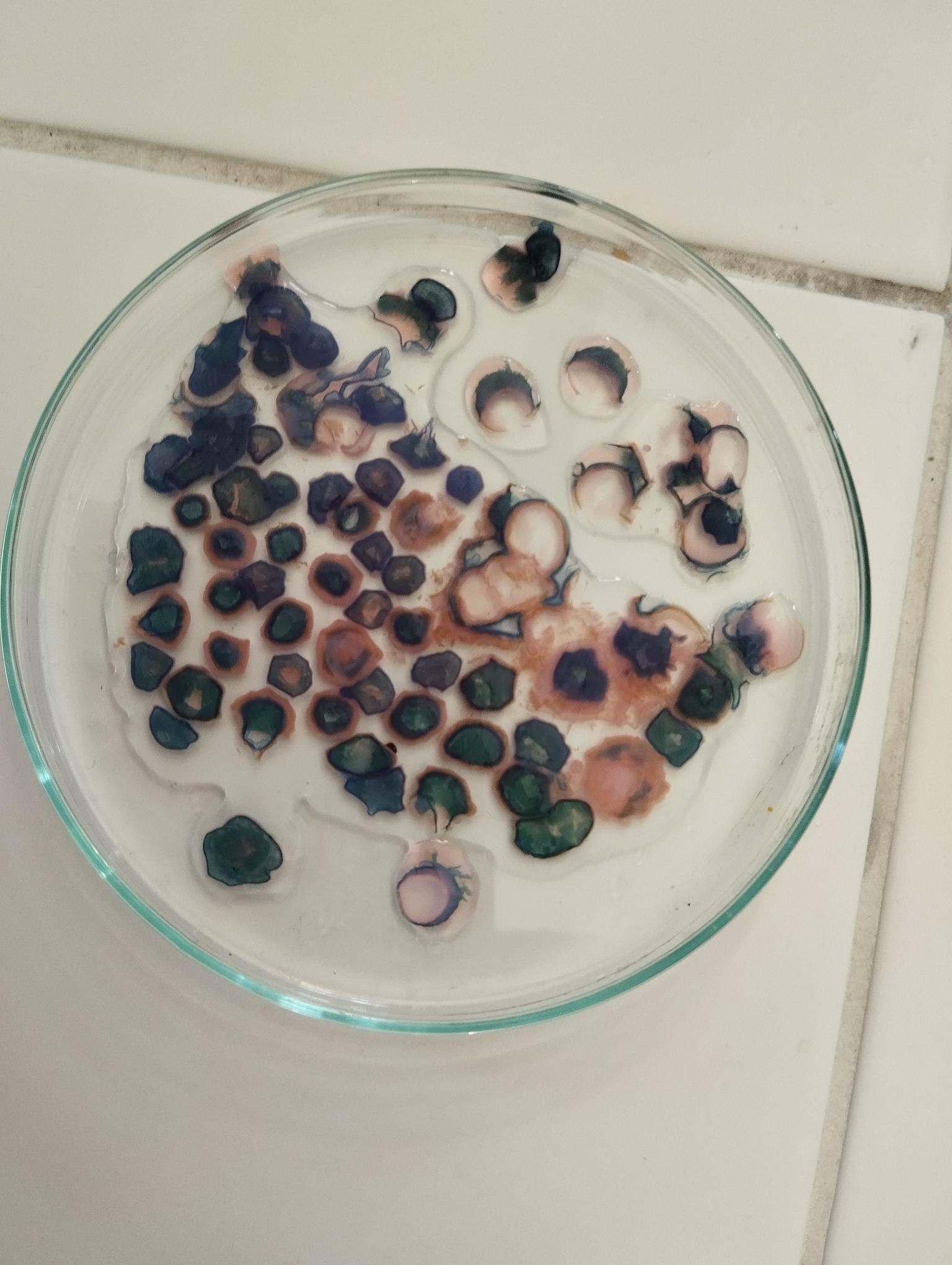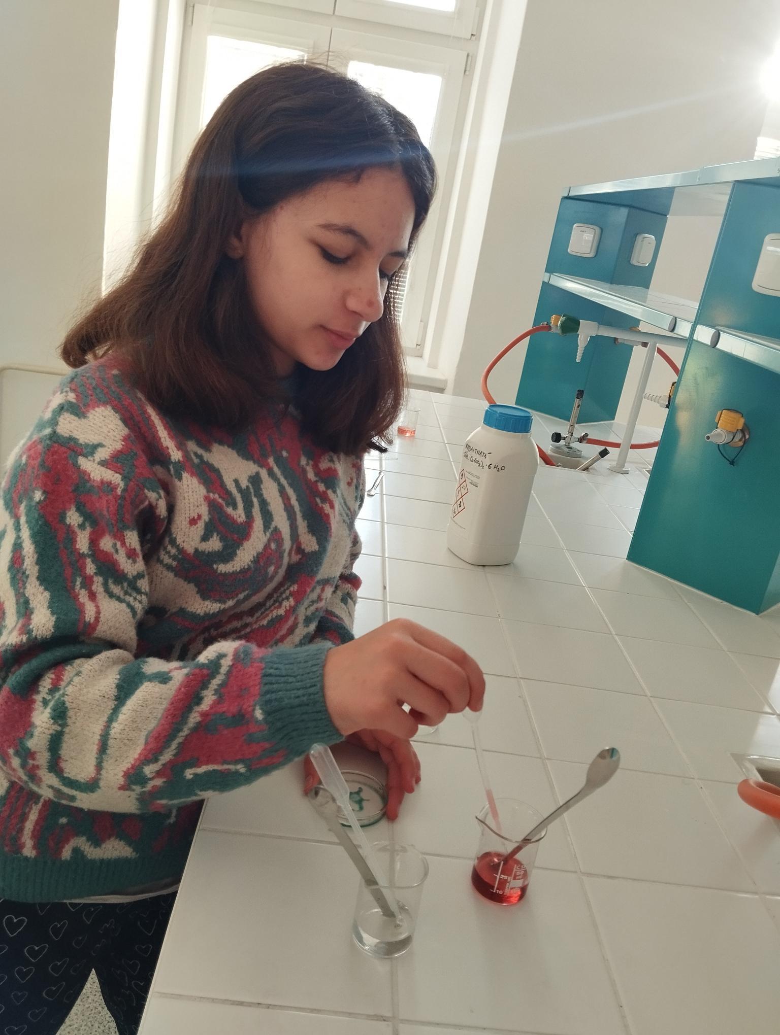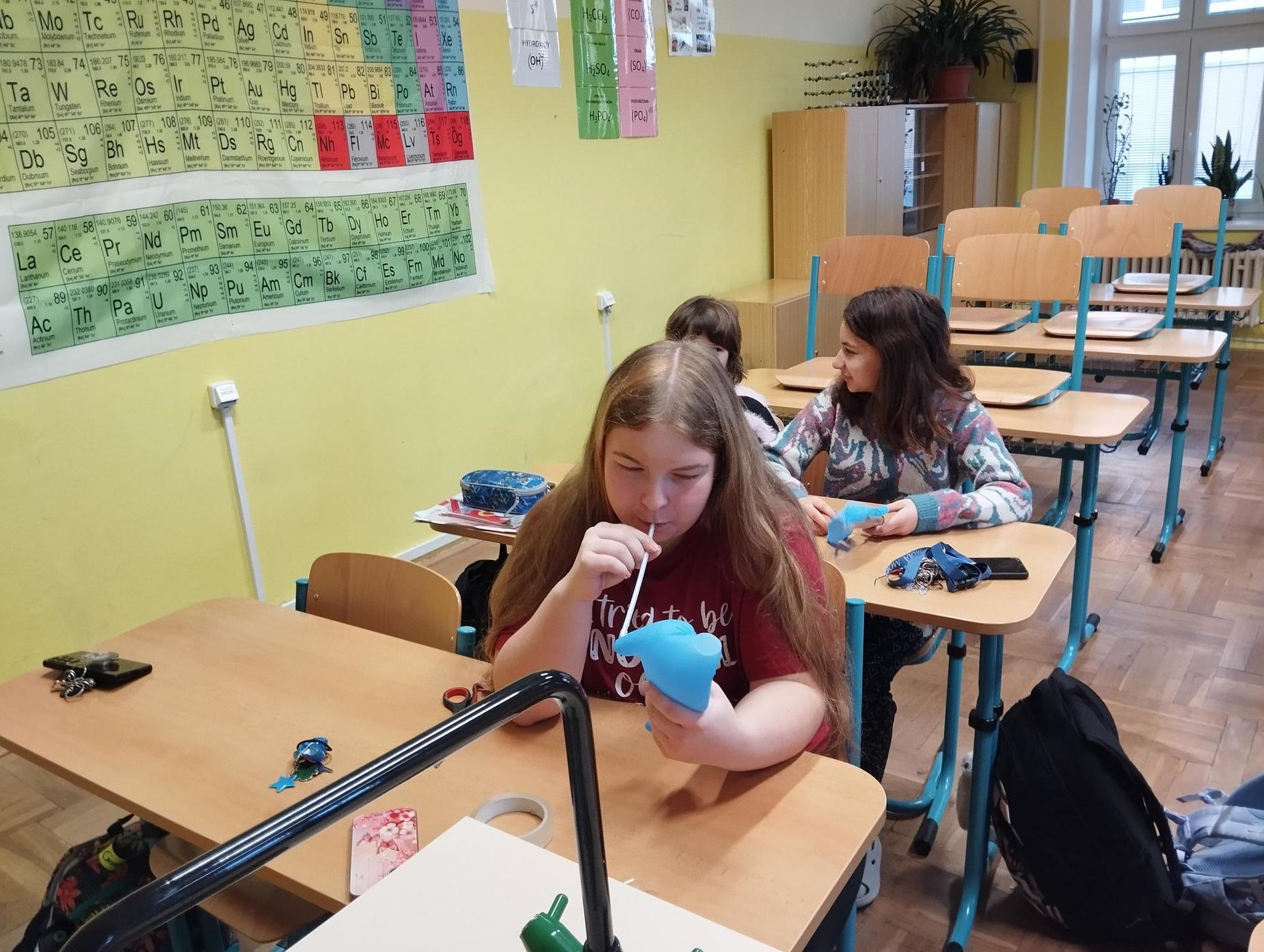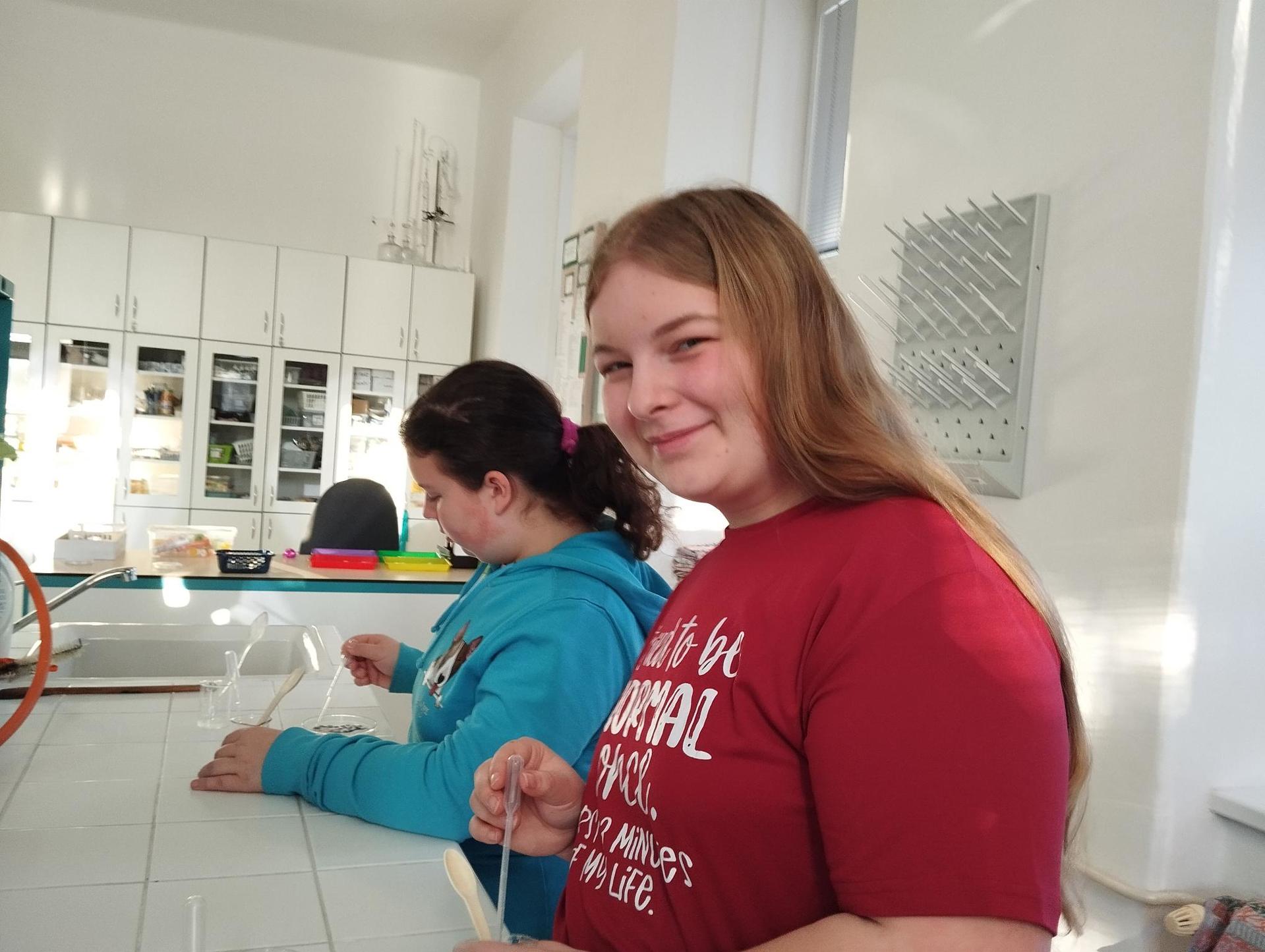 Protože každý žák měl jinou délku a průměr ruličky, vznikaly ve výsledku různě hluboké tóny. Ve druhé části kroužku si žáci vyzkoušely kouzlo chemické reakce, při které dotykem kapek 2 barevných roztoků vznikl nový roztok třetí barvy. Děti tak mohly podpořit svou kreativitu vytvořením různých barevných obrazců na Petriho misce.