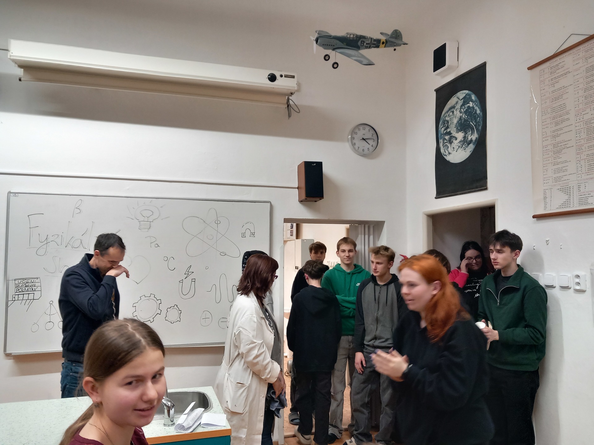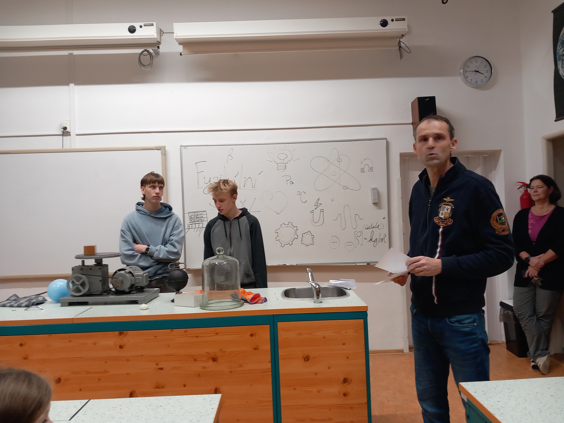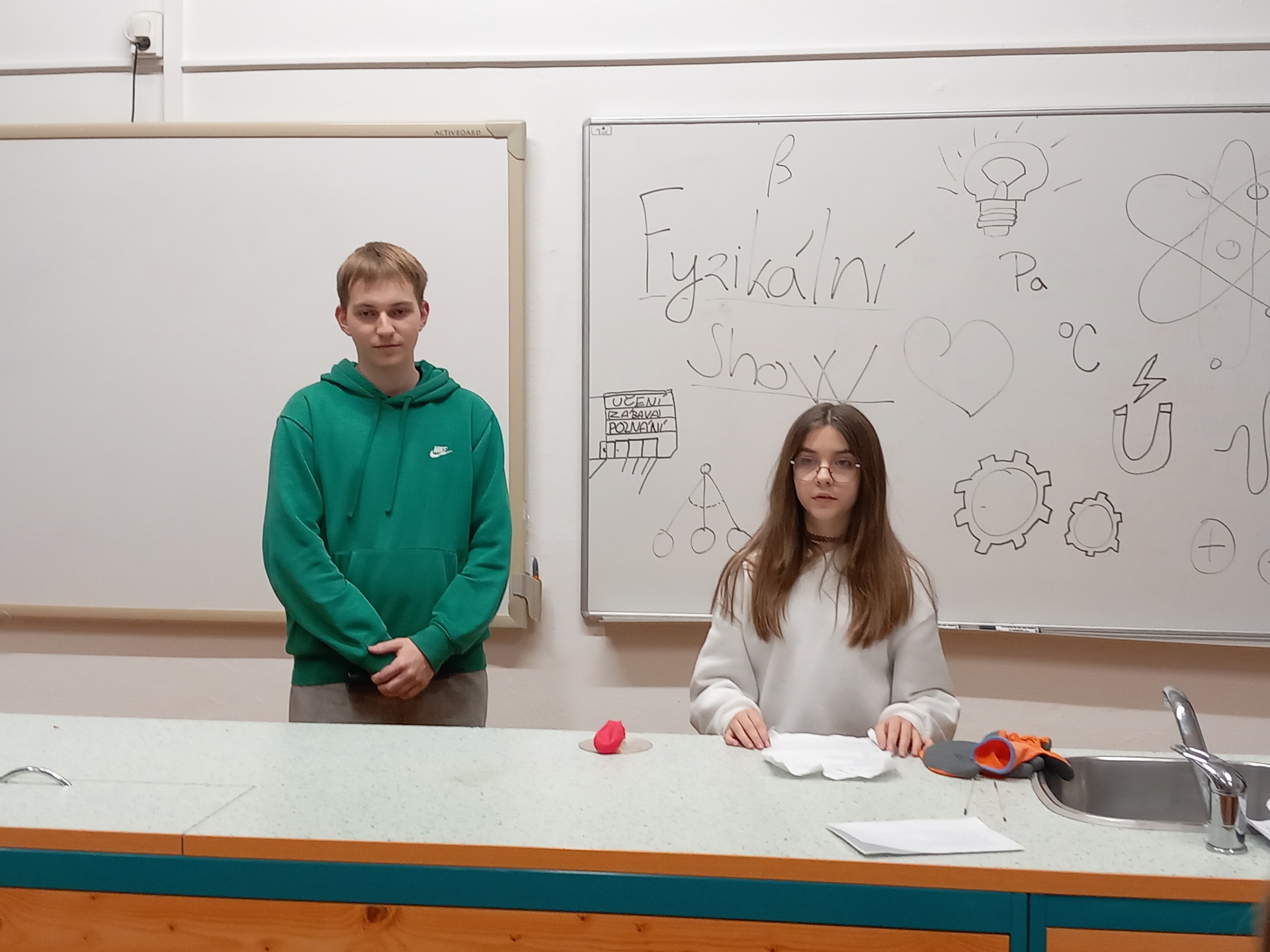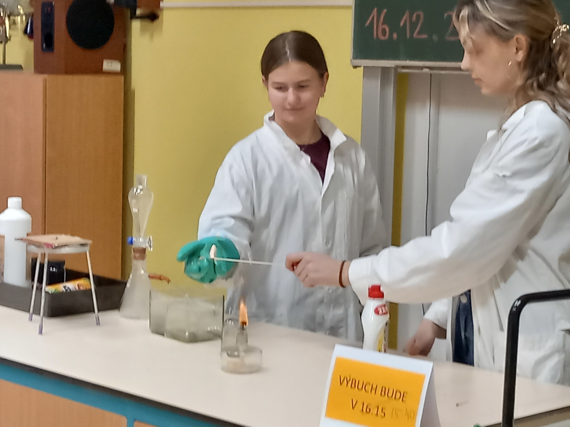 V úterý 16. prosince 2025 se v naší škole odehrálo výjimečné odpoledne. Nejmladší žáci – primánci – spojili své síly s téměř nejstaršími spolužáky ze septimy a společně připravili chemickou a fyzikální show pro rodiče, učitele i kamarády.