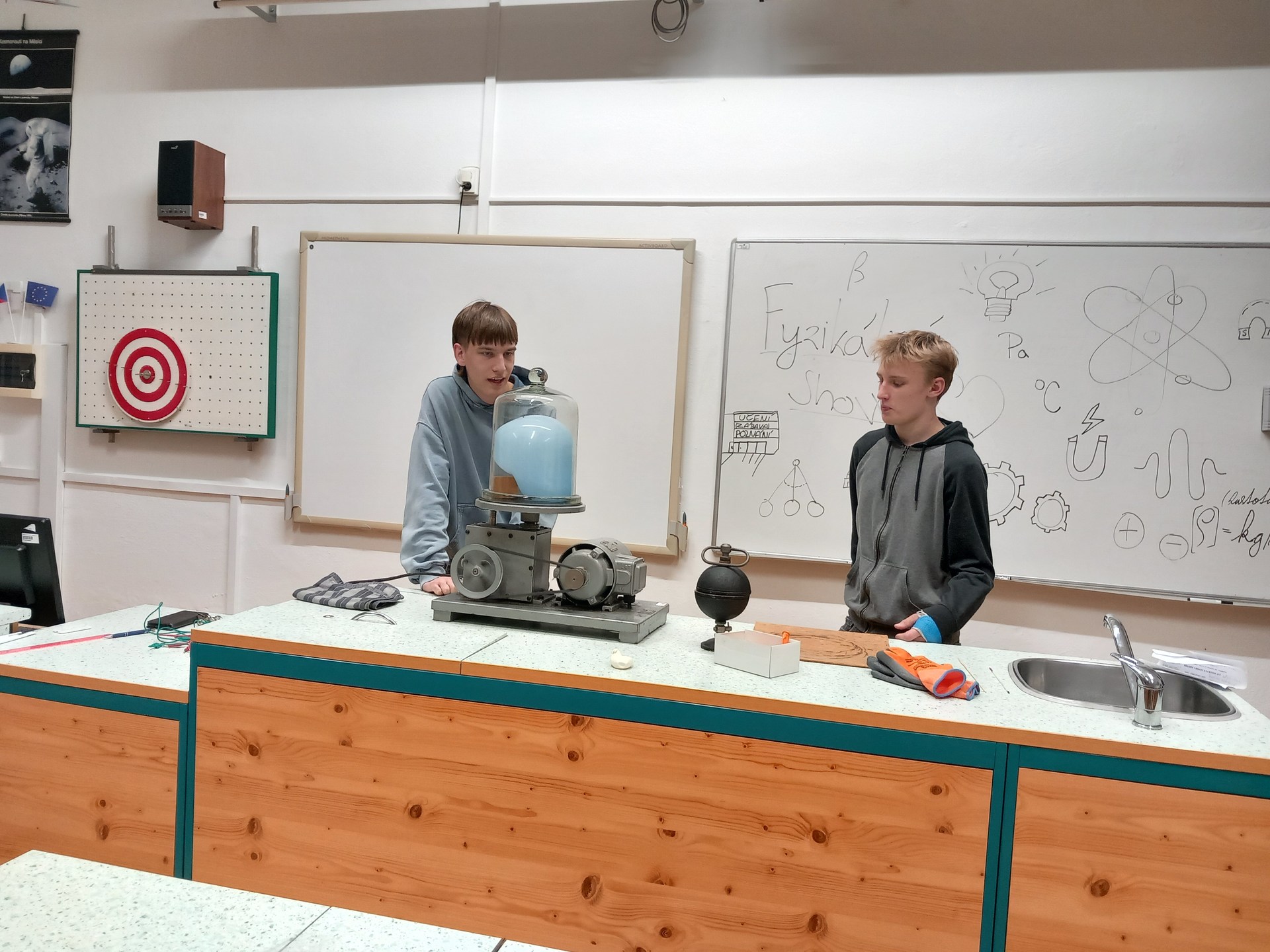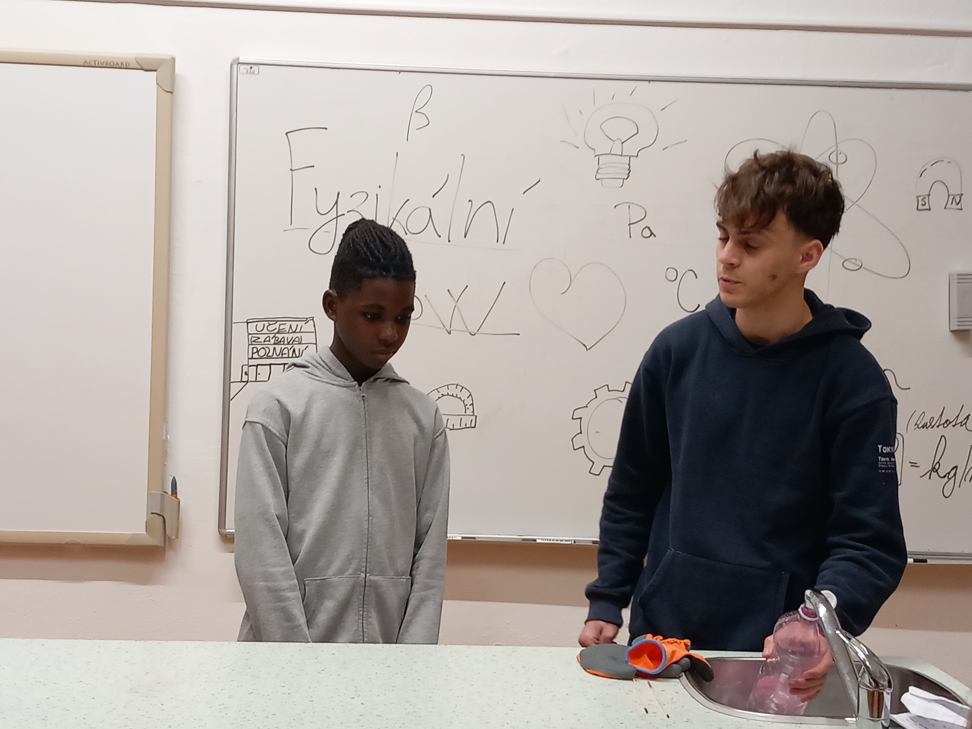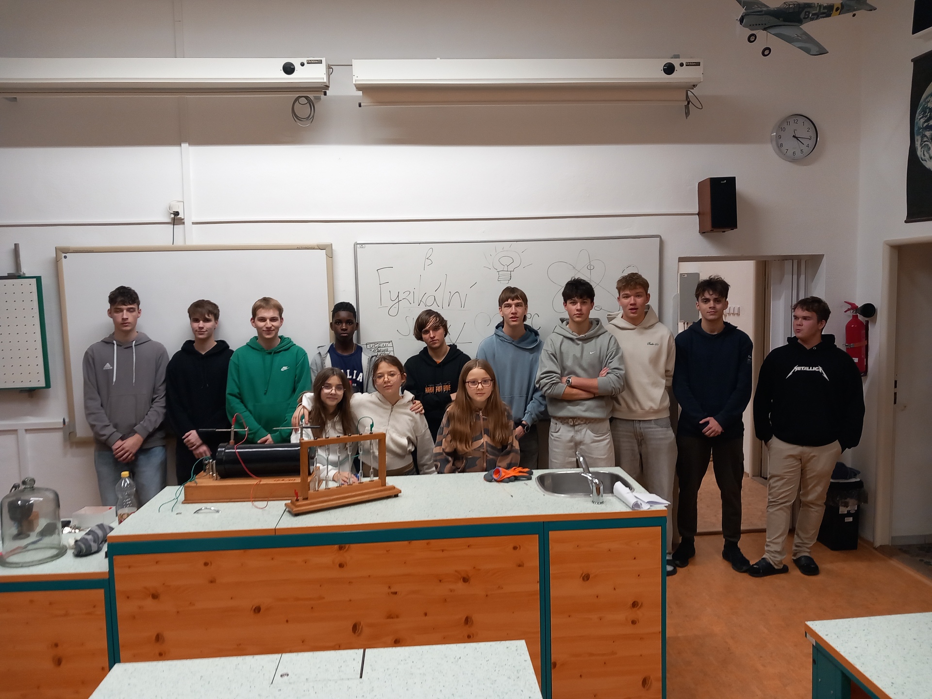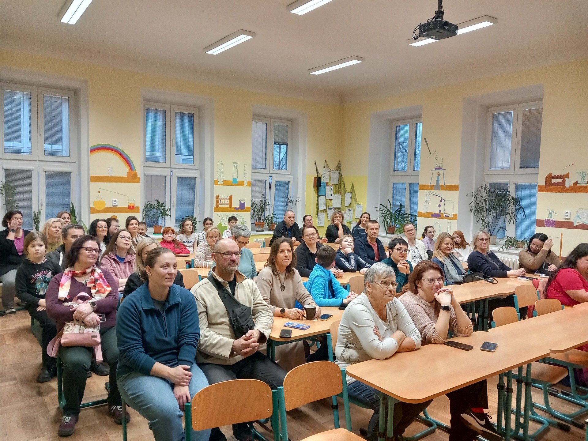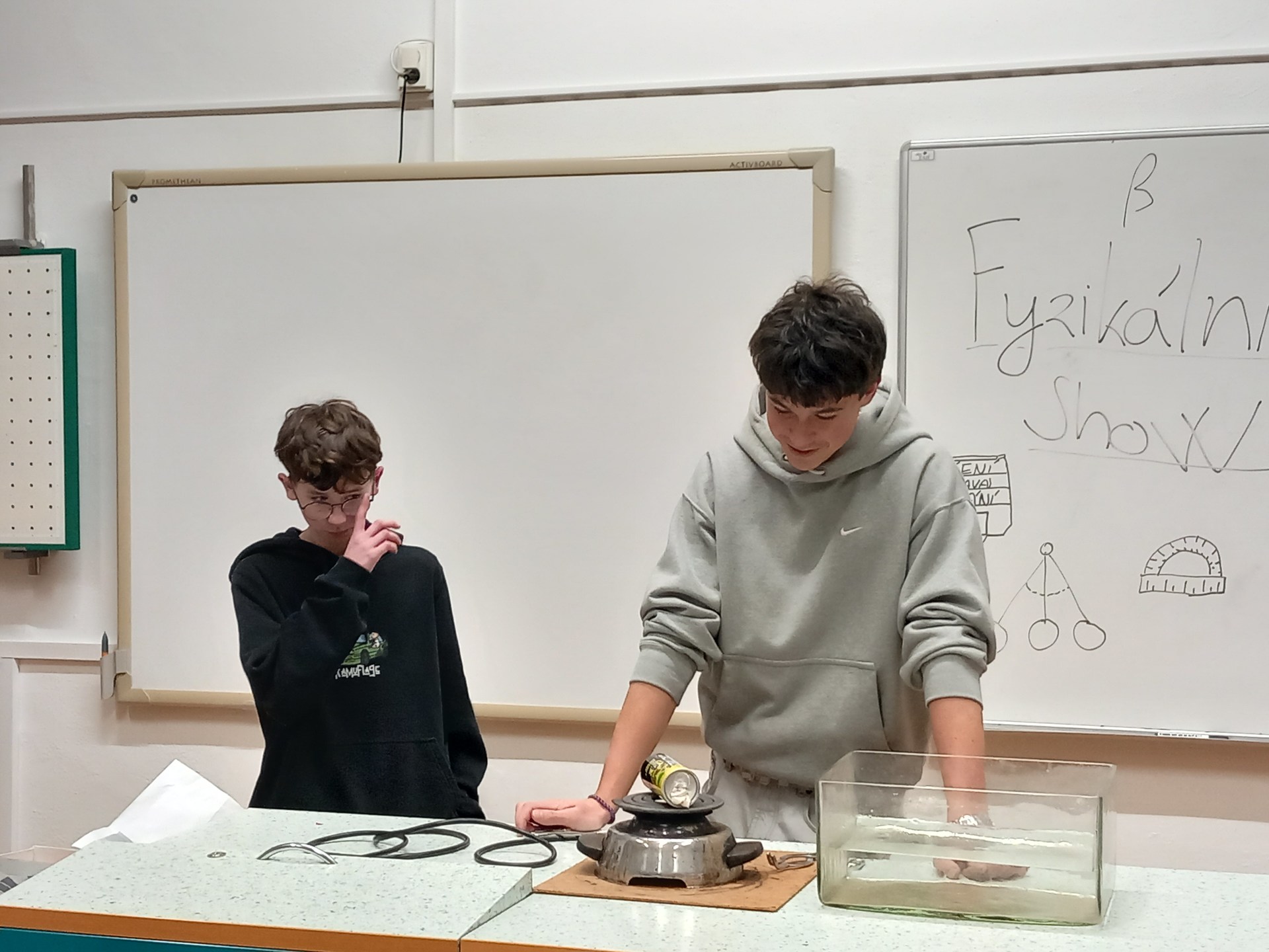 V úterý 16. prosince 2025 se v naší škole odehrálo výjimečné odpoledne. Nejmladší žáci – primánci – spojili své síly s téměř nejstaršími spolužáky ze septimy a společně připravili chemickou a fyzikální show pro rodiče, učitele i kamarády.