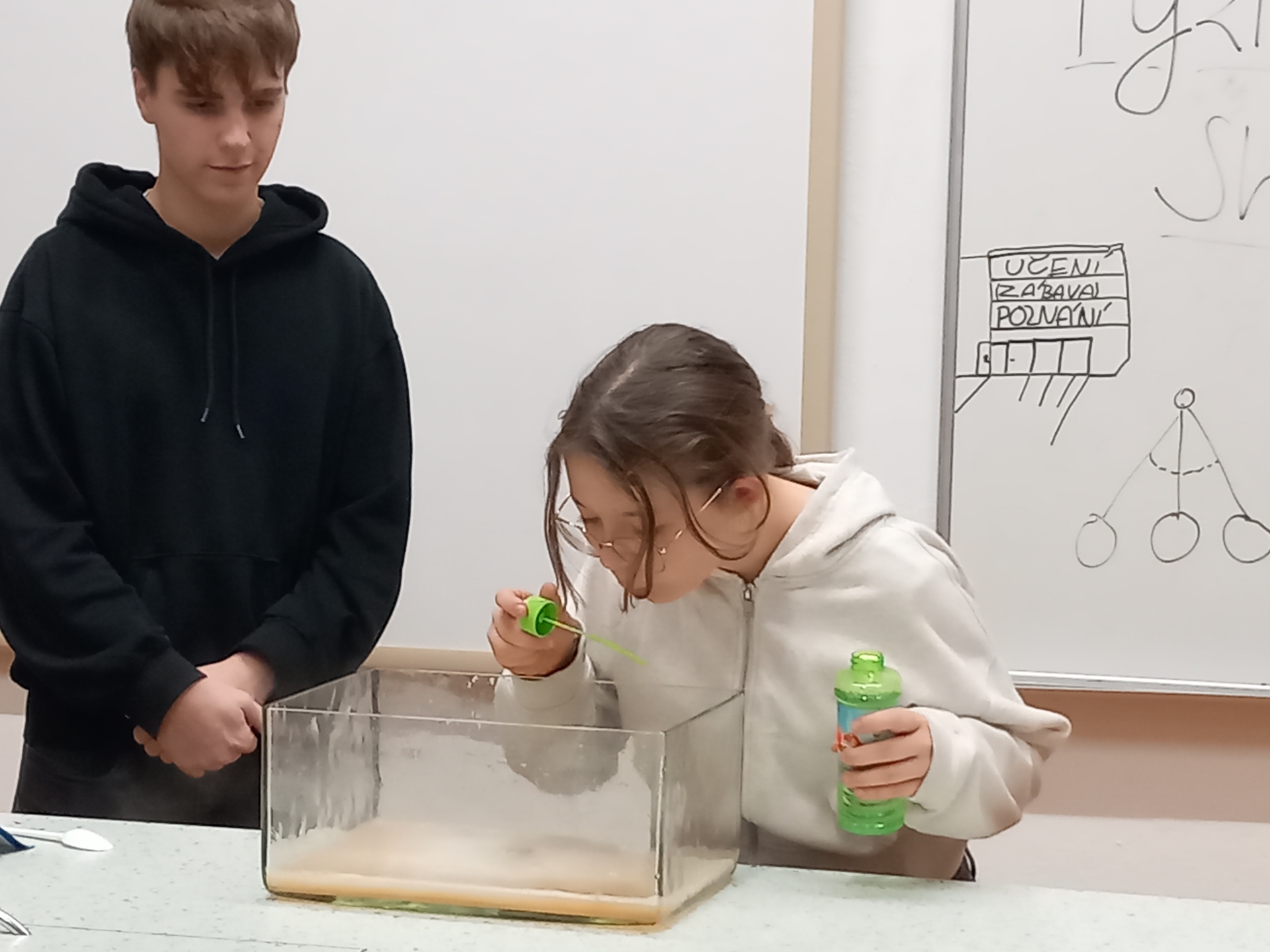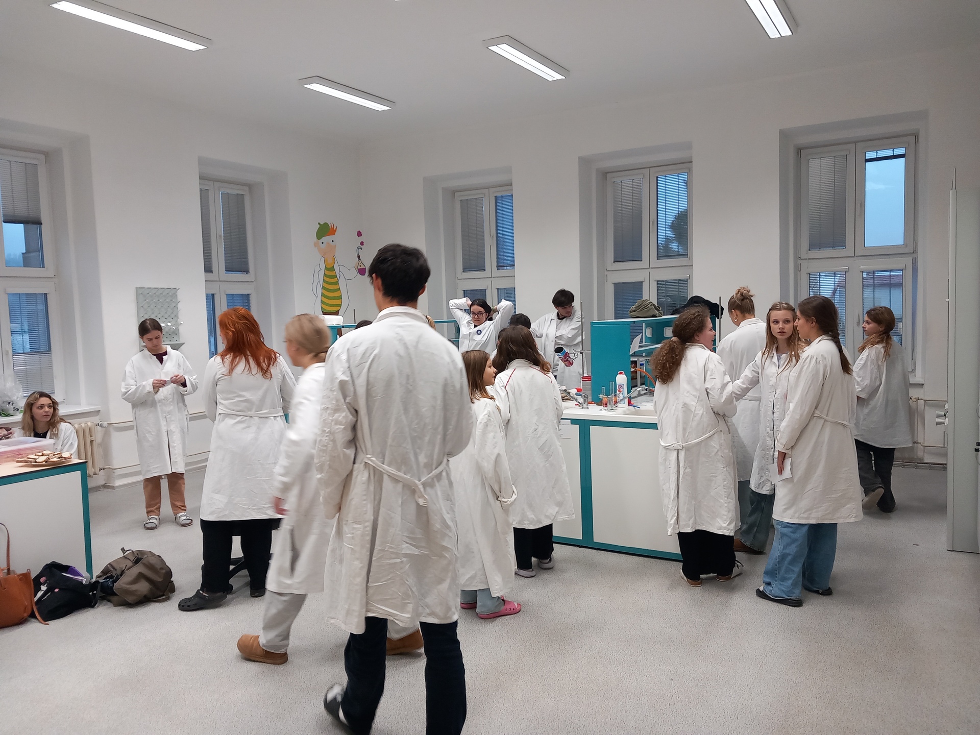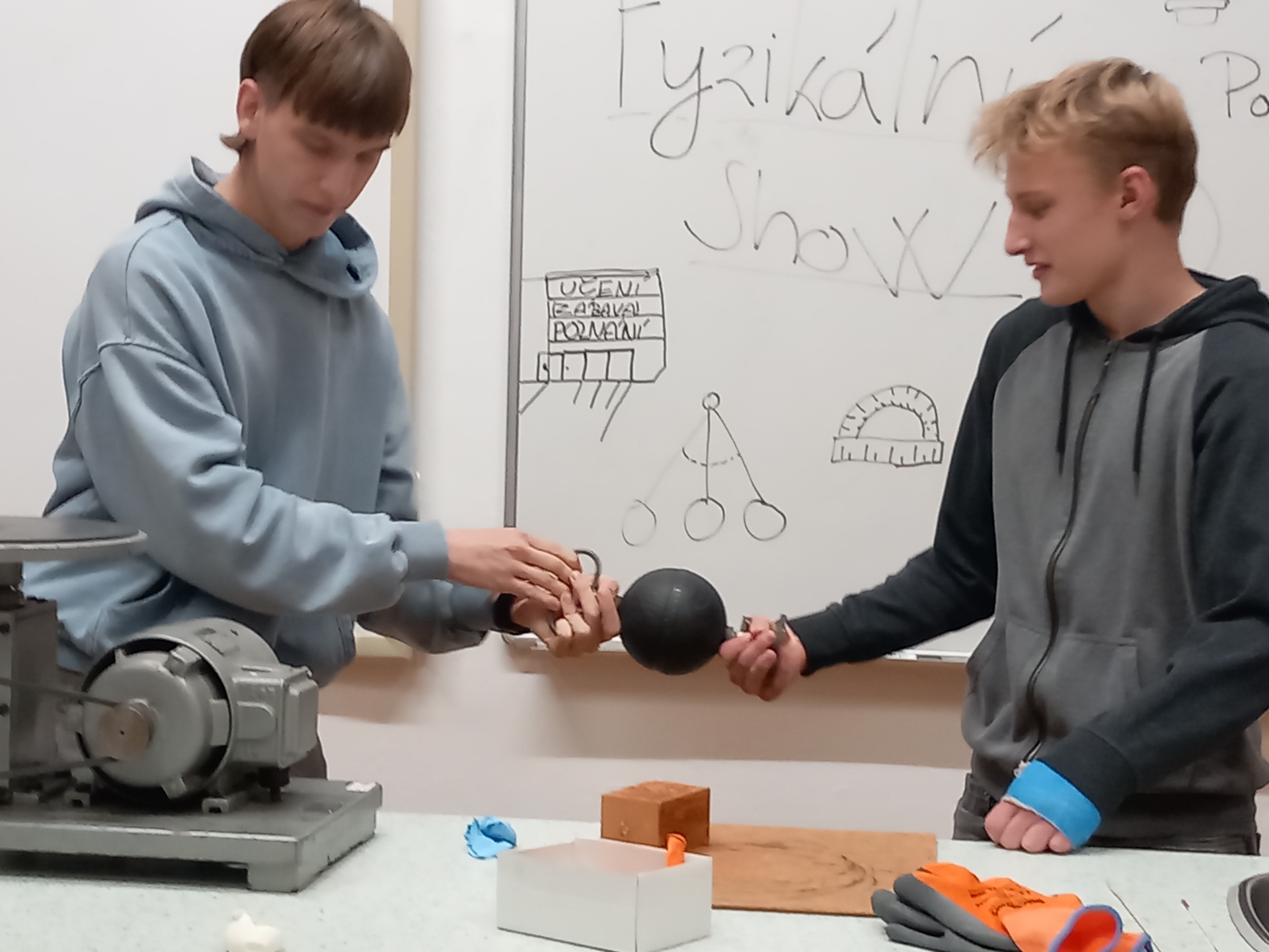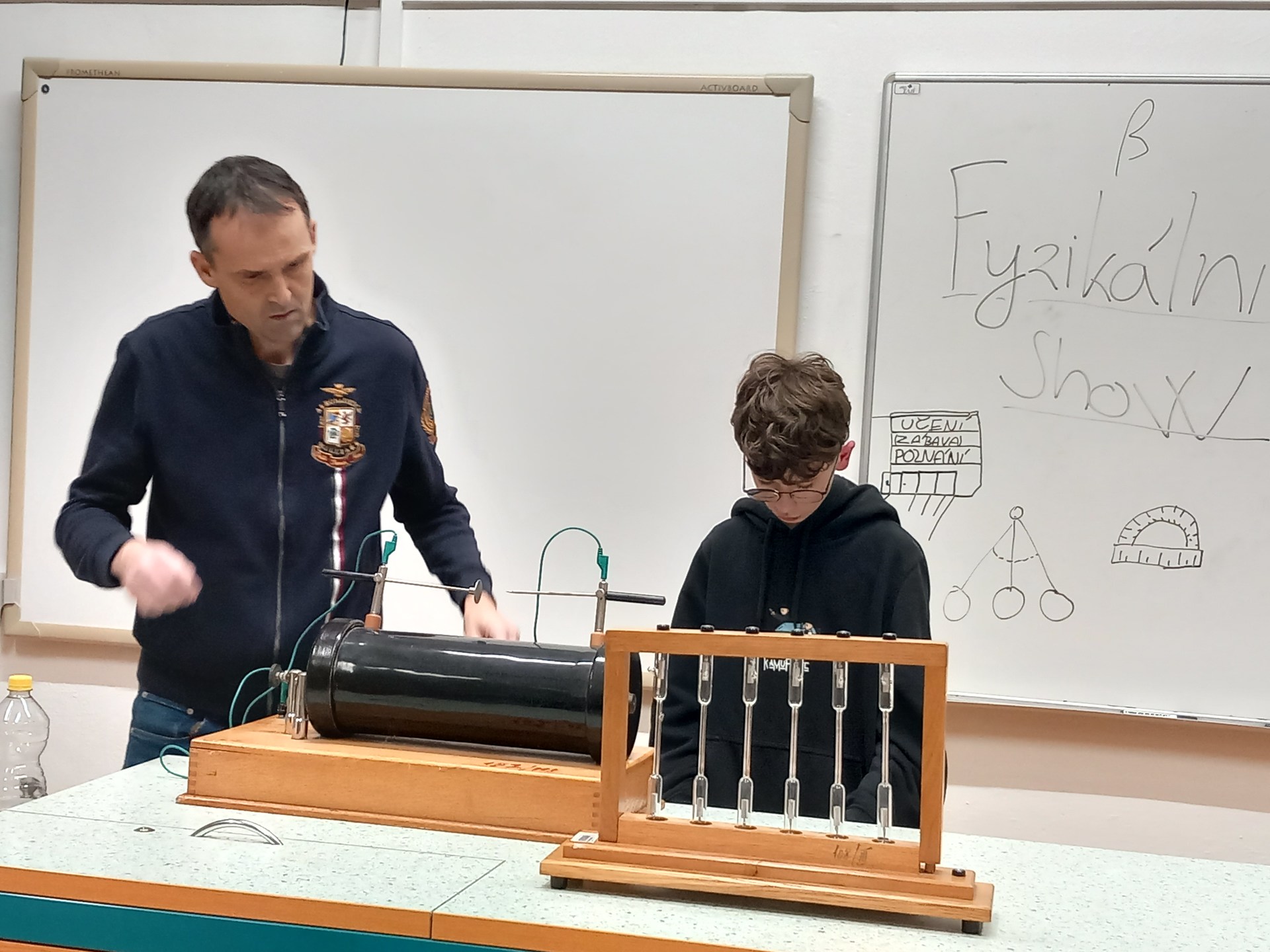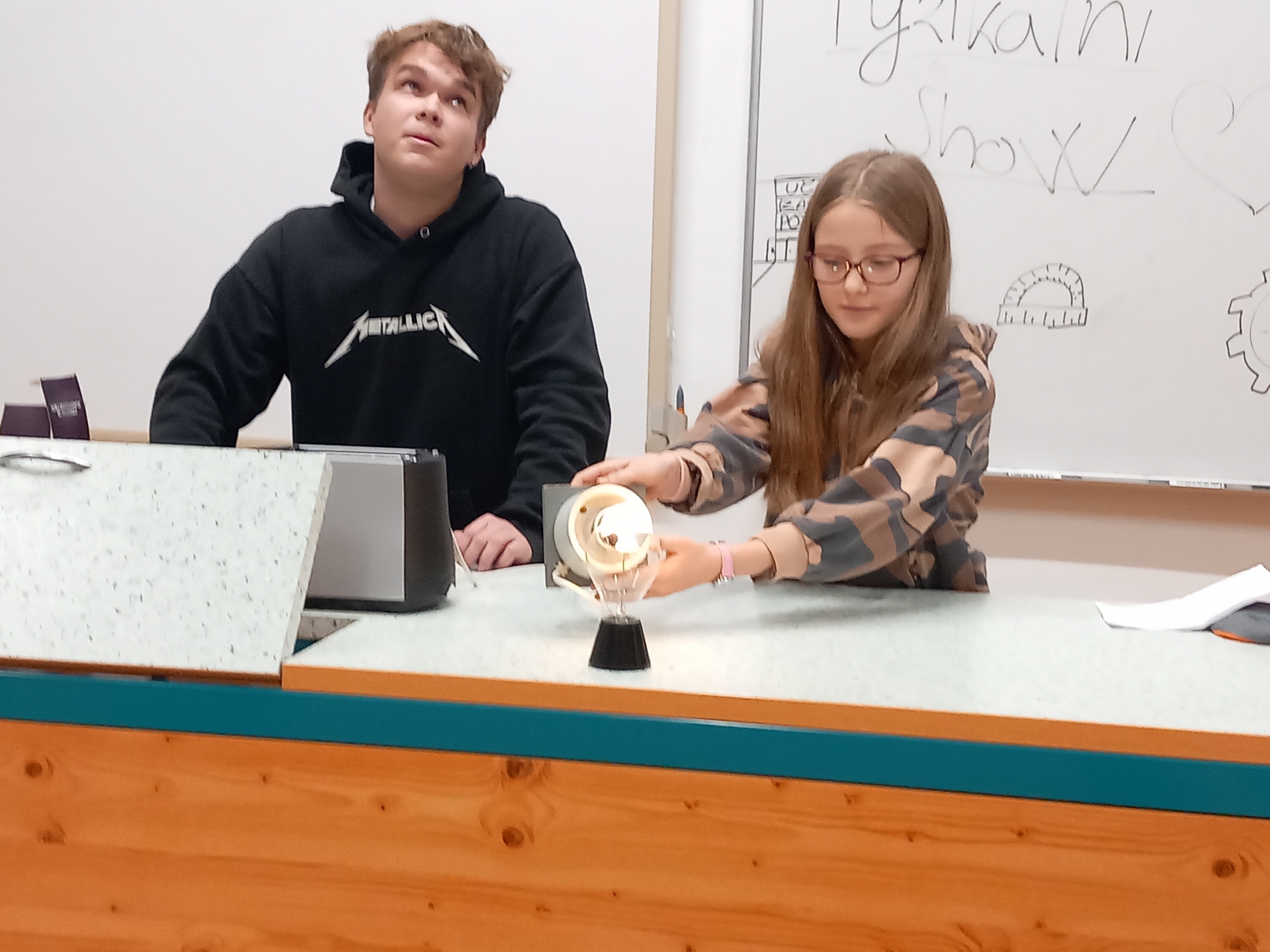 V úterý 16. prosince 2025 se v naší škole odehrálo výjimečné odpoledne. Nejmladší žáci – primánci – spojili své síly s téměř nejstaršími spolužáky ze septimy a společně připravili chemickou a fyzikální show pro rodiče, učitele i kamarády.