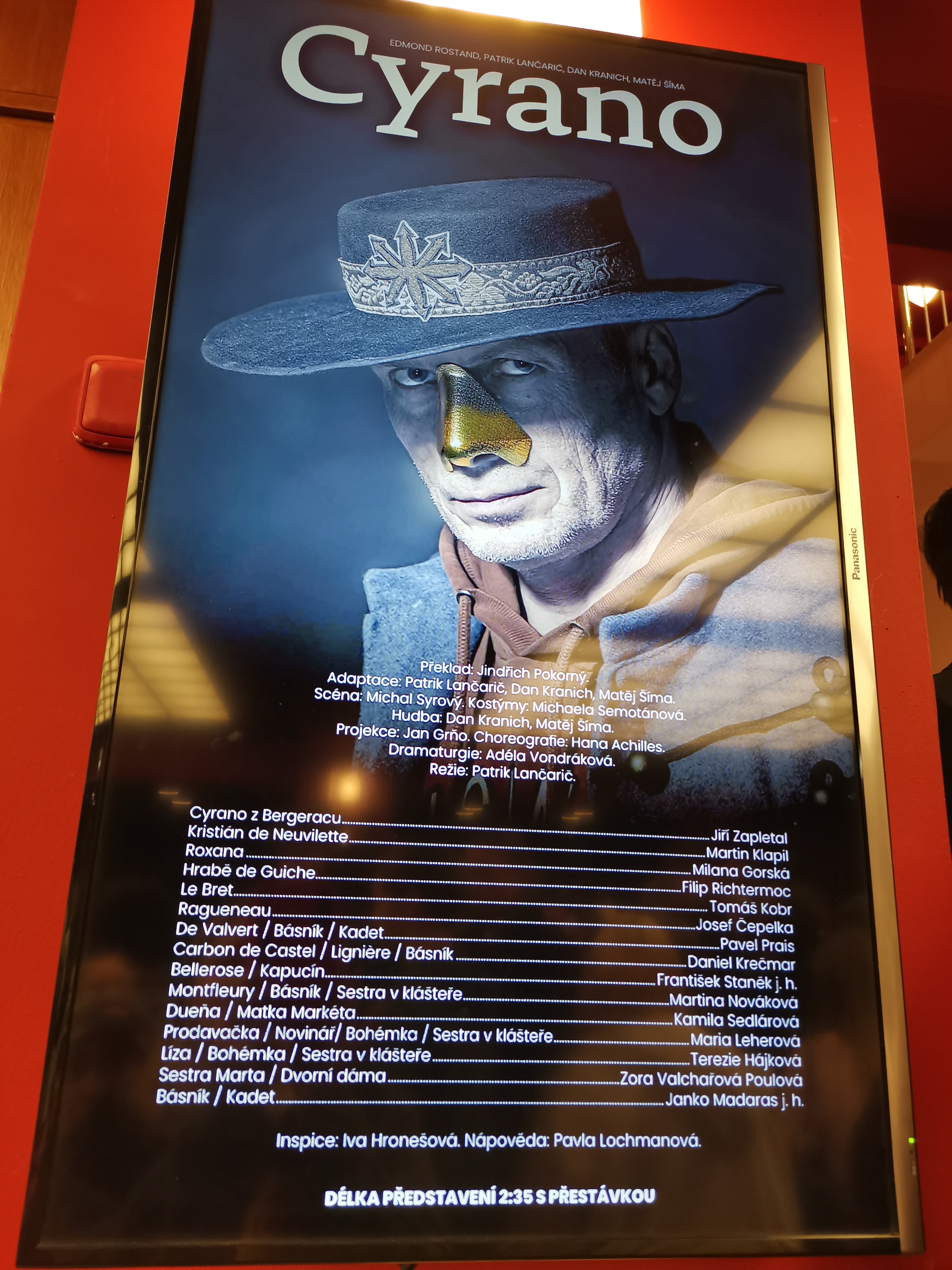 Na programu byla divadelní klasika Cyrano z Bergeracu, ovšem upravená do rytmu 21. století. Nadčasové téma souboje vnitřní a vnější krásy herci představili zcela nově, a to za pomoci rapu a hip-hopu. Polovina studentů byla touto úpravou nadšena, druhá by prý raději uvítala klasické zpracování.
