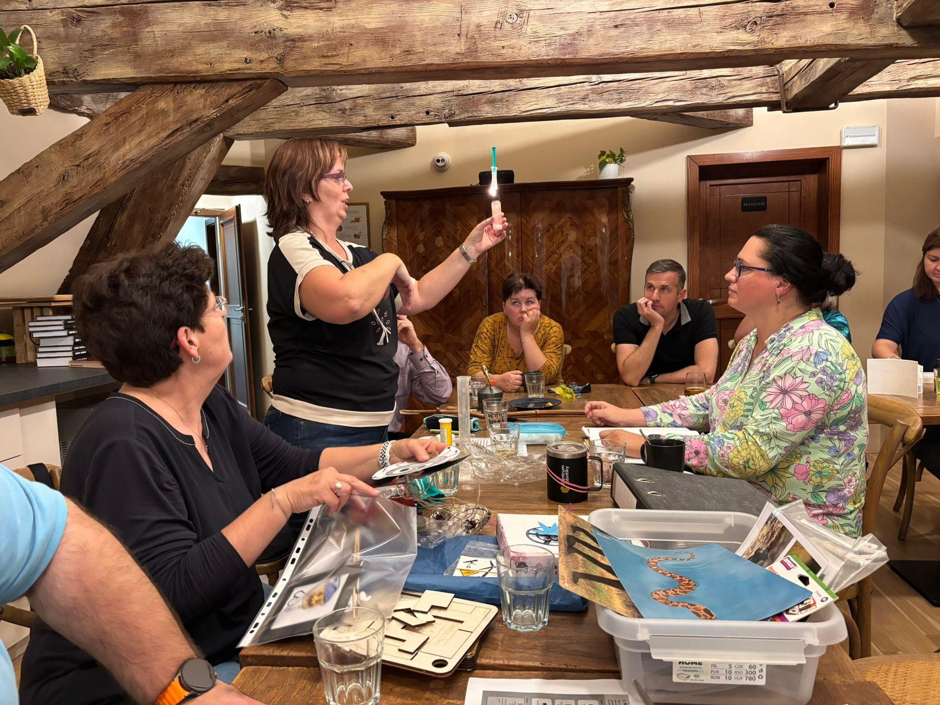 Naše kolegyně se také pravidelně účastní setkání Elixír chemie na Gymnáziu ve Šlapanicích, kde už třetím rokem sdílí své nápady a čerpá nové inspirace pro moderní a zážitkovou výuku.