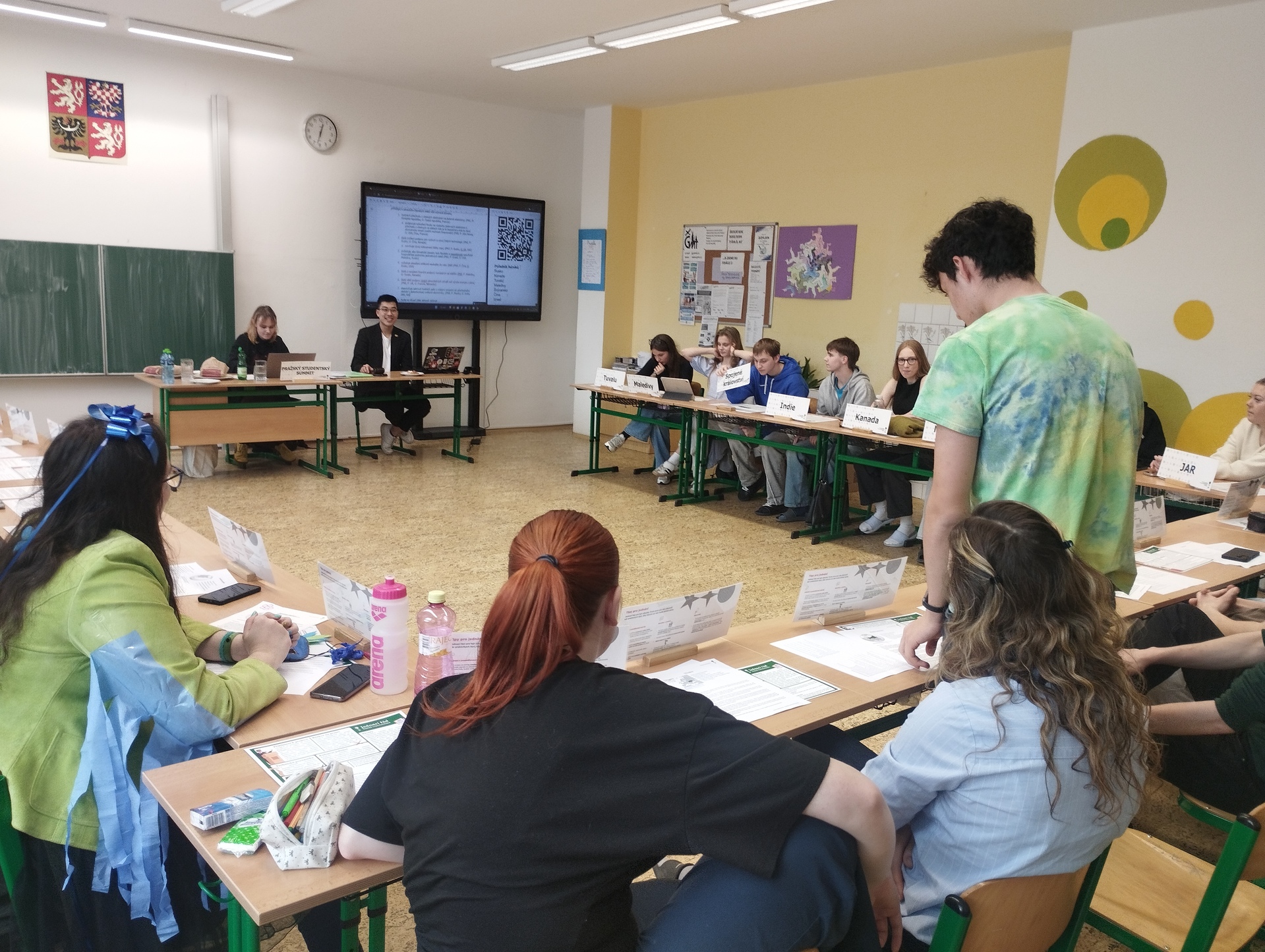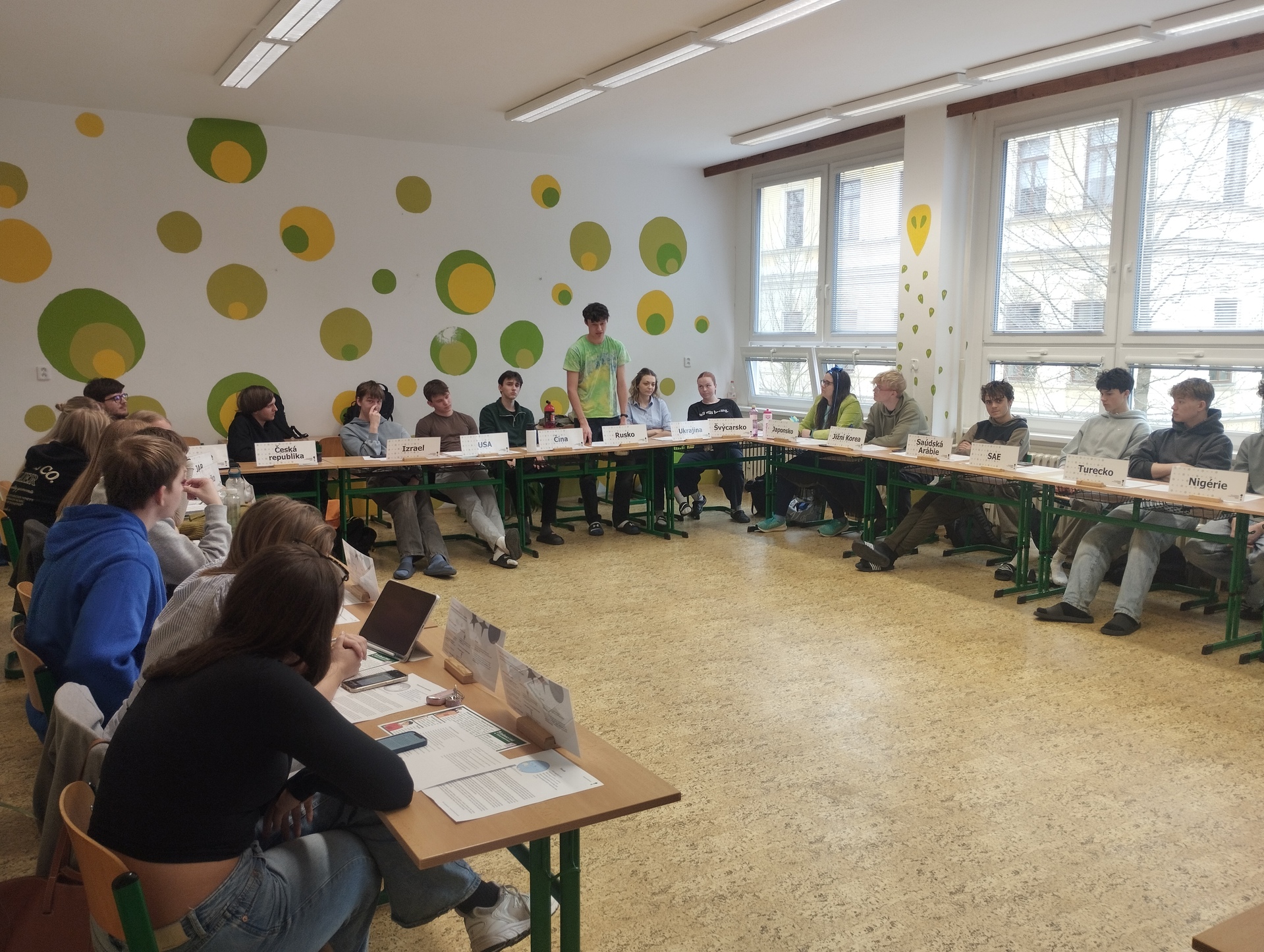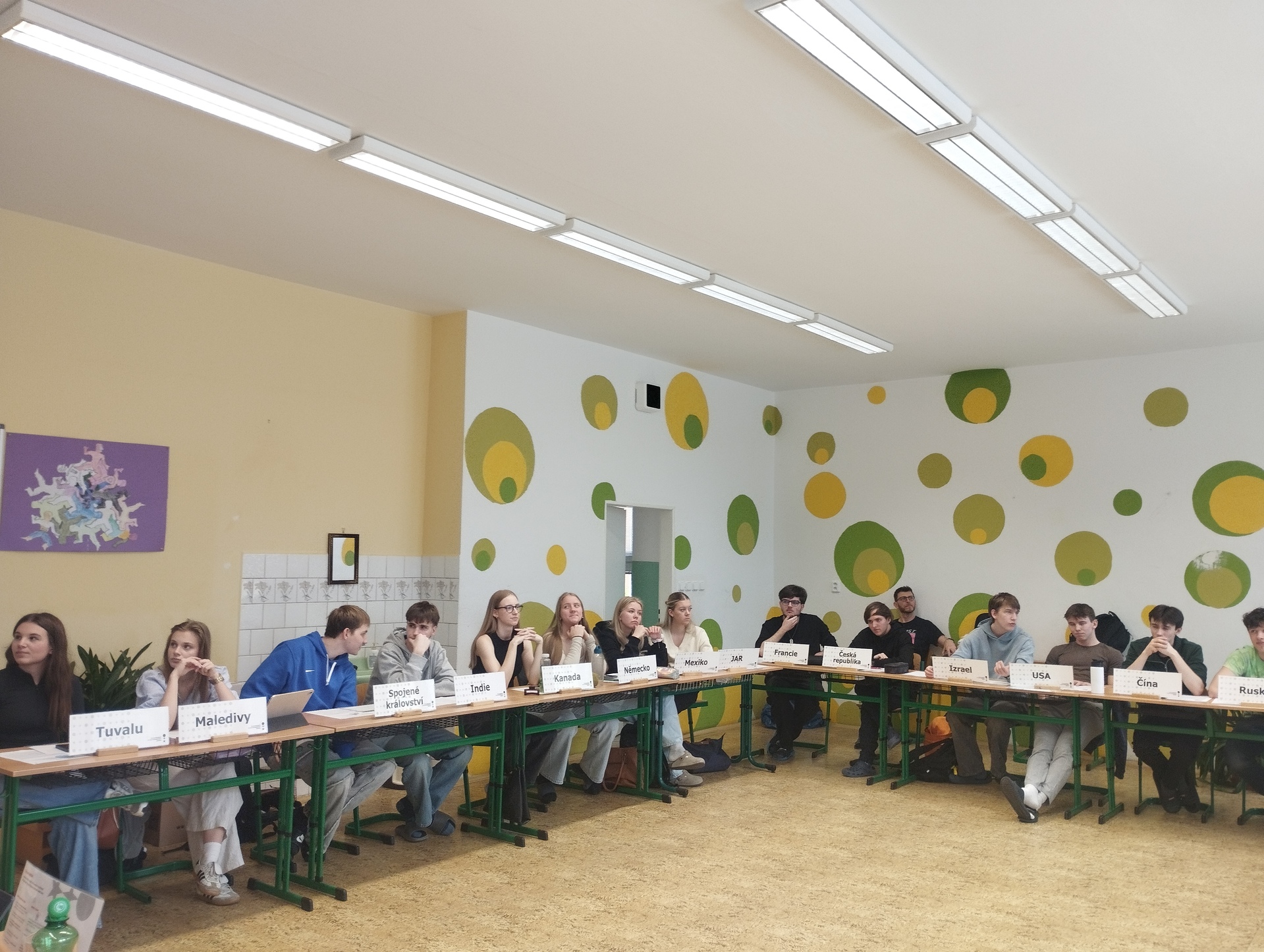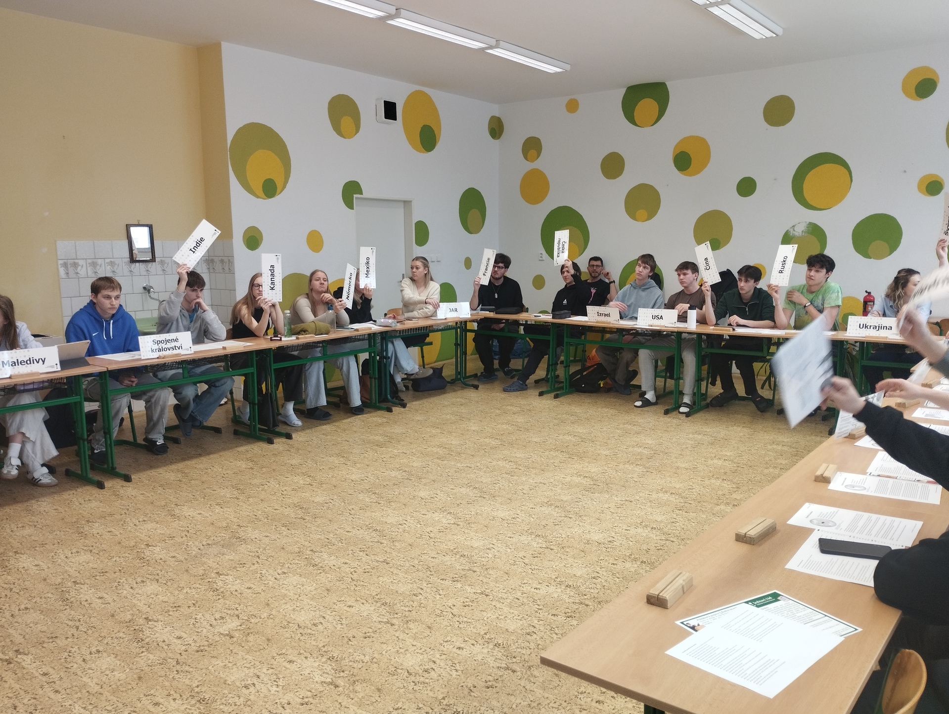 Přesně takový obrat dokázali navodit vysokoškoláci z Pražského studentského summitu, kteří do školy přijeli se simulací konference COP UNFCCC – tedy Konference smluvních stran Rámcové úmluvy OSN o změně klimatu. Žáci se rozdělili do rolí zástupců jednotlivých států, navrhovali body rezoluce, hledali kompromisy, čelili pozměňovacím návrhům a nakonec hlasovali o výsledném textu. Od prvotní opatrnosti ke skutečnému diplomatickému provozu – přesně tahle proměna dělá z podobných akcí víc než běžnou výuku.