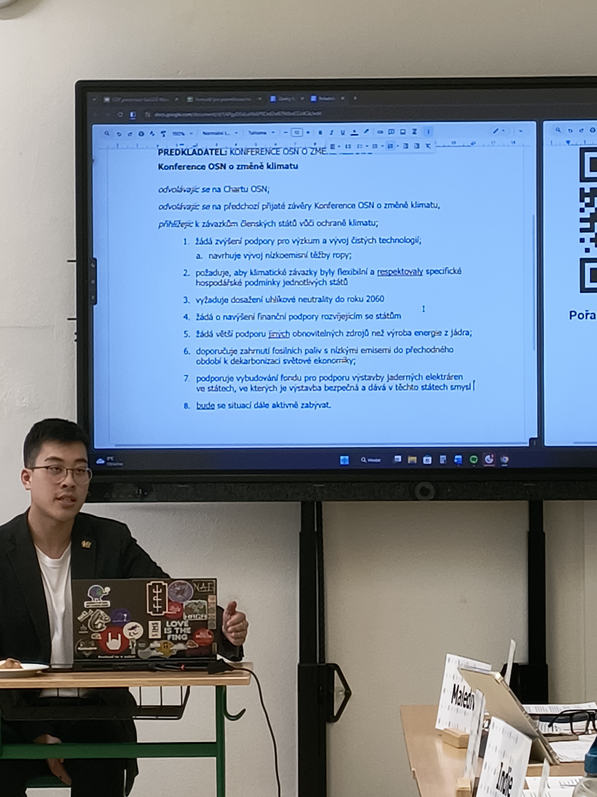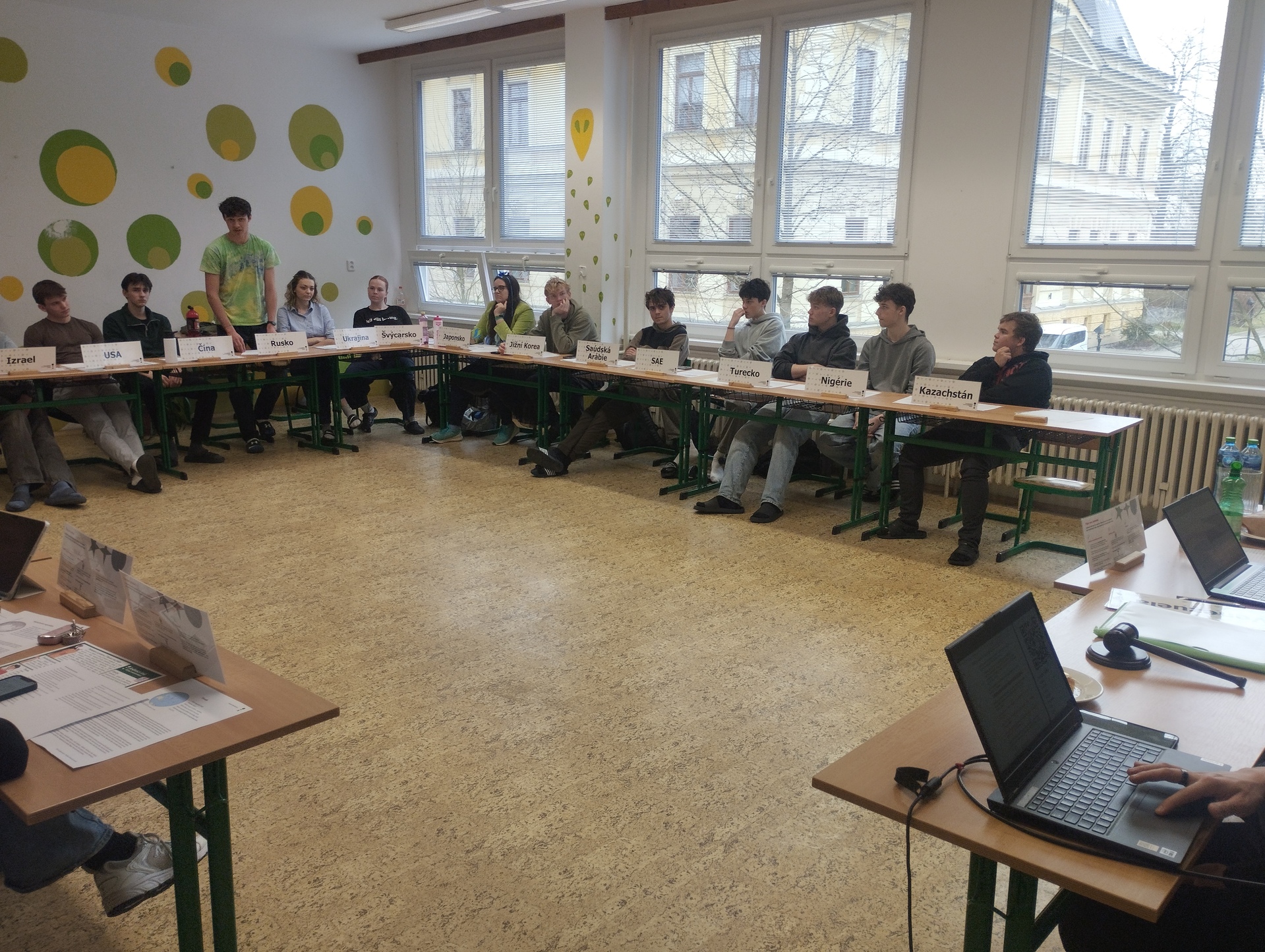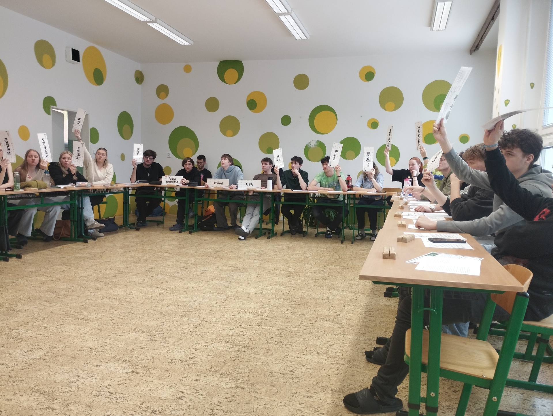 Přesně takový obrat dokázali navodit vysokoškoláci z Pražského studentského summitu, kteří do školy přijeli se simulací konference COP UNFCCC – tedy Konference smluvních stran Rámcové úmluvy OSN o změně klimatu. Žáci se rozdělili do rolí zástupců jednotlivých států, navrhovali body rezoluce, hledali kompromisy, čelili pozměňovacím návrhům a nakonec hlasovali o výsledném textu. Od prvotní opatrnosti ke skutečnému diplomatickému provozu – přesně tahle proměna dělá z podobných akcí víc než běžnou výuku.