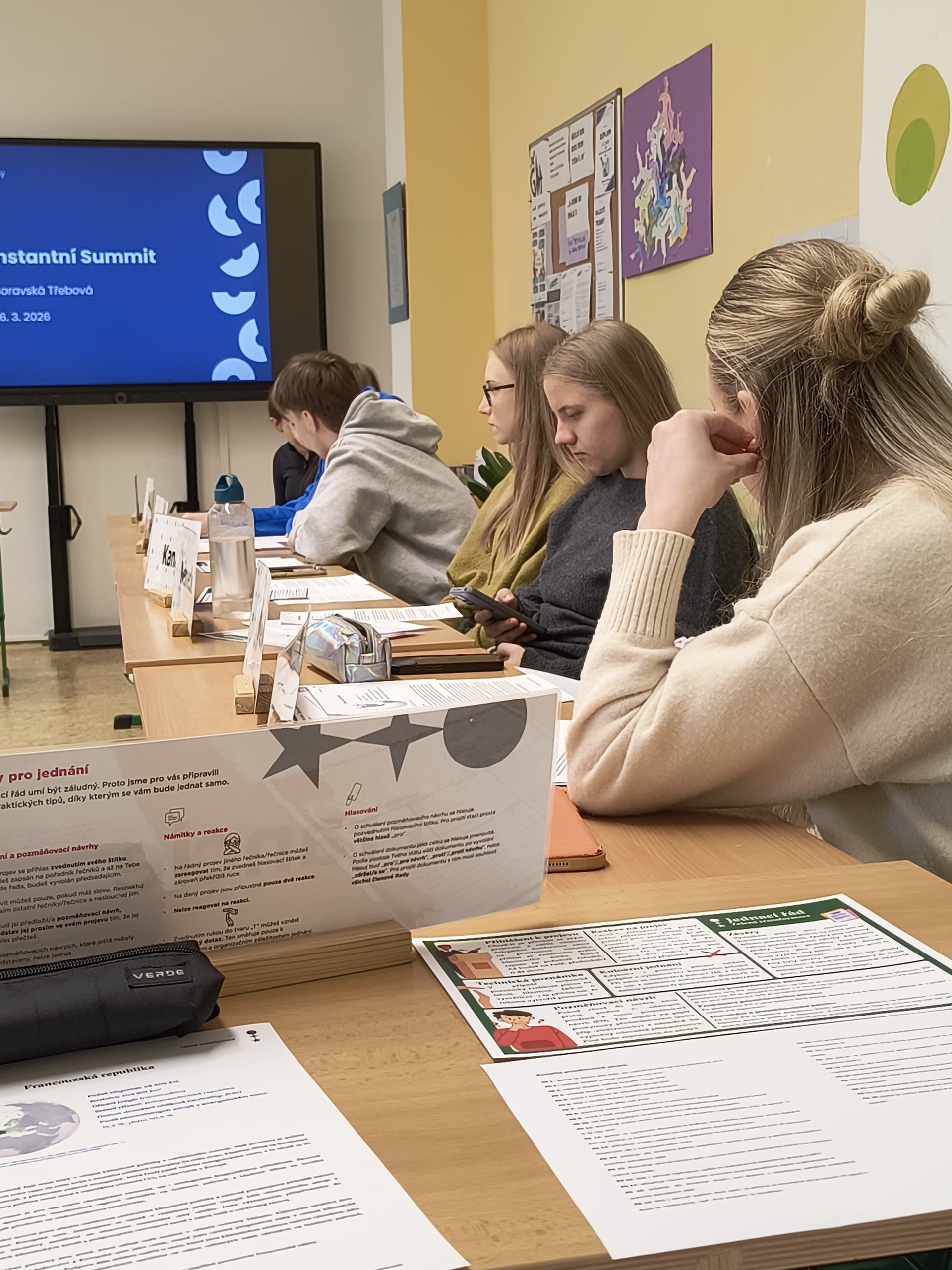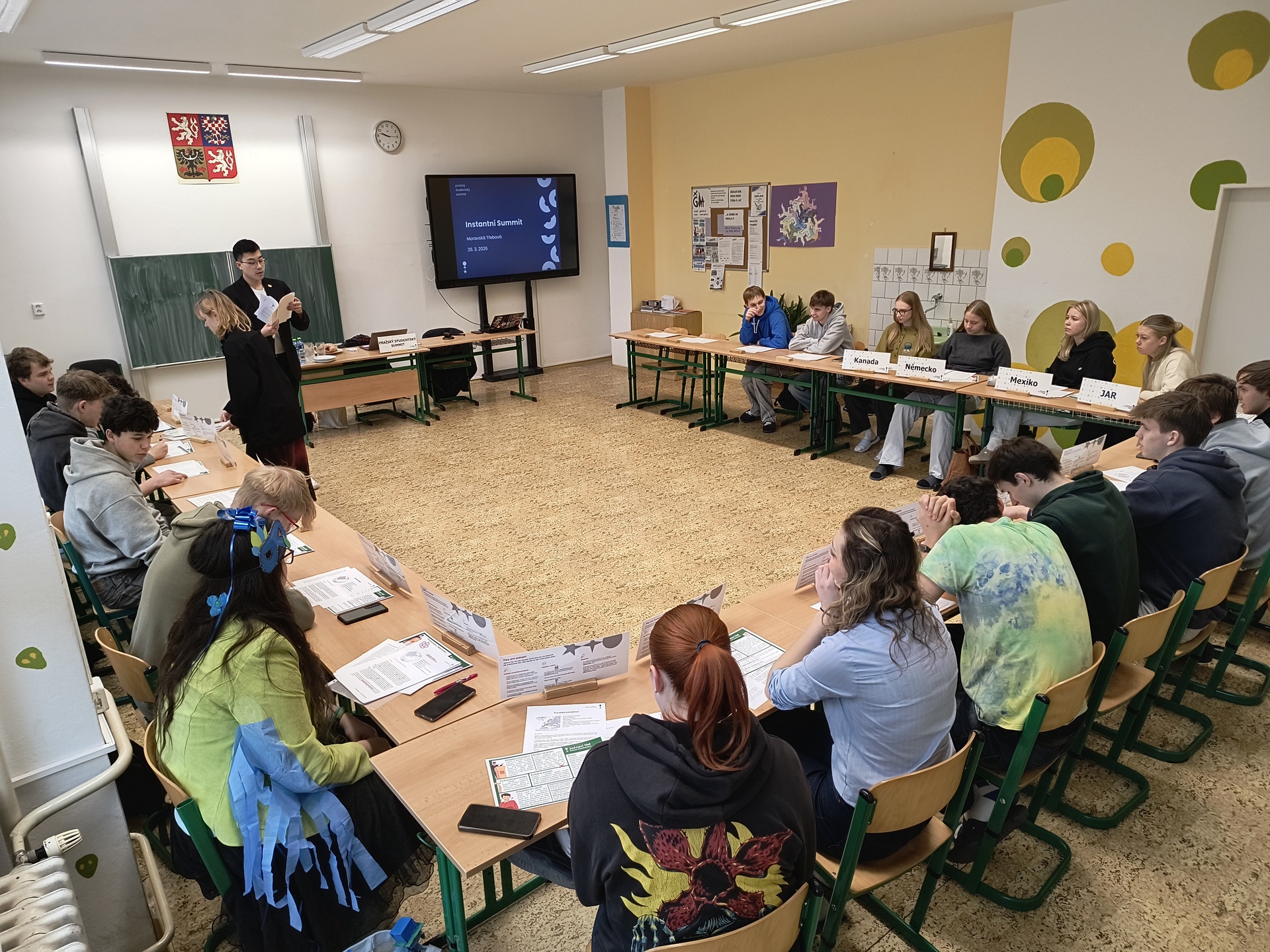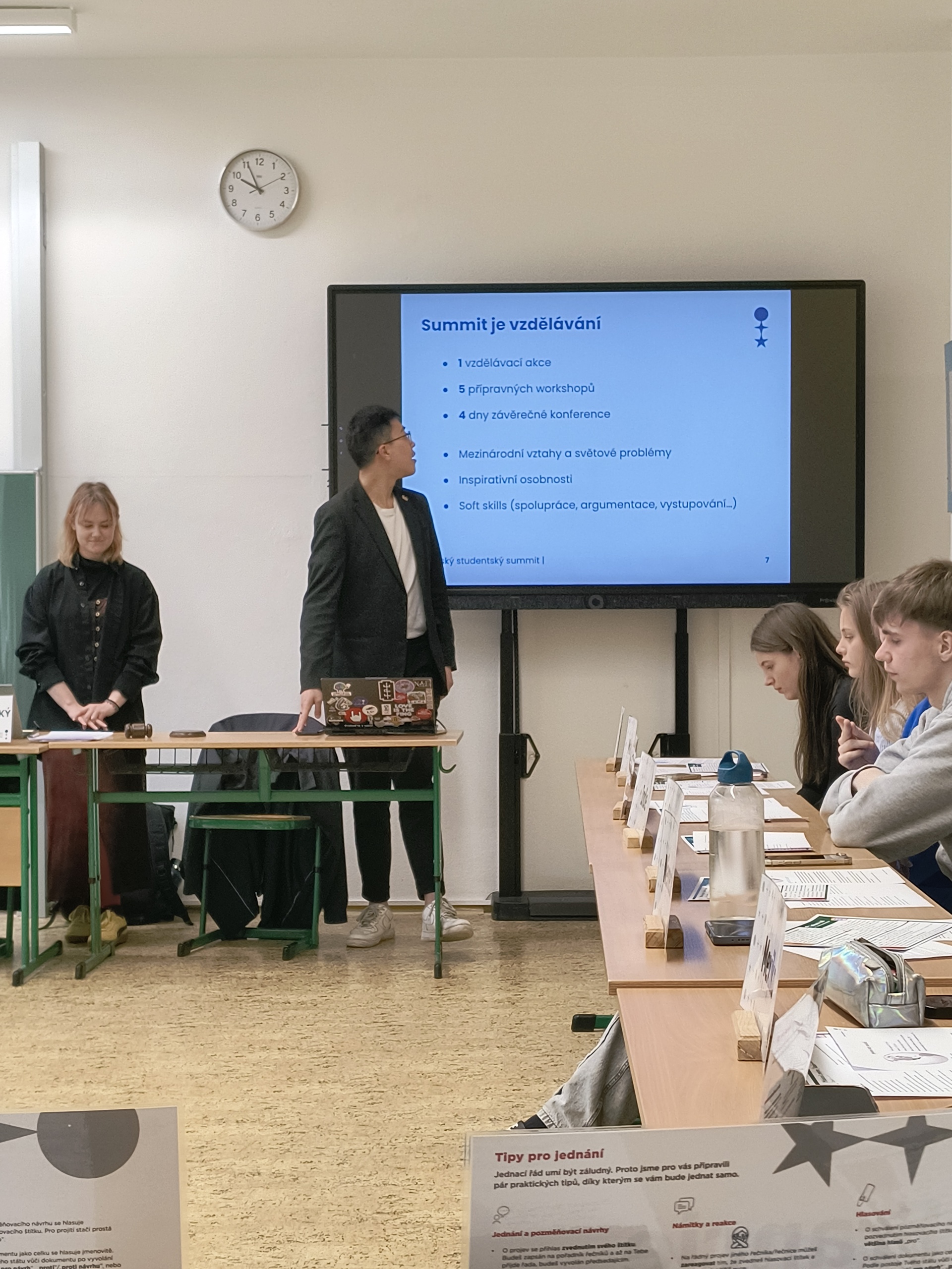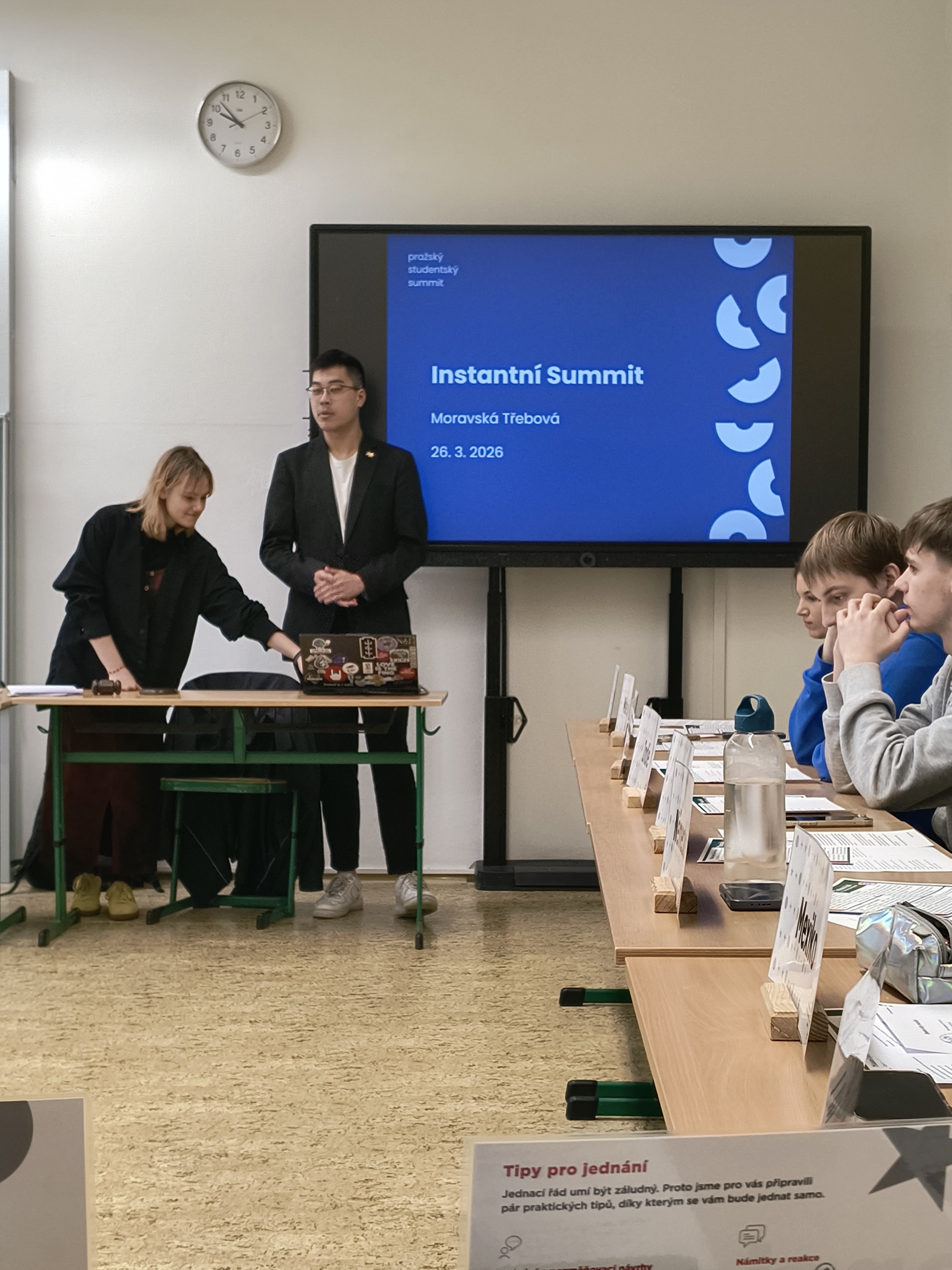 Přesně takový obrat dokázali navodit vysokoškoláci z Pražského studentského summitu, kteří do školy přijeli se simulací konference COP UNFCCC – tedy Konference smluvních stran Rámcové úmluvy OSN o změně klimatu. Žáci se rozdělili do rolí zástupců jednotlivých států, navrhovali body rezoluce, hledali kompromisy, čelili pozměňovacím návrhům a nakonec hlasovali o výsledném textu. Od prvotní opatrnosti ke skutečnému diplomatickému provozu – přesně tahle proměna dělá z podobných akcí víc než běžnou výuku.