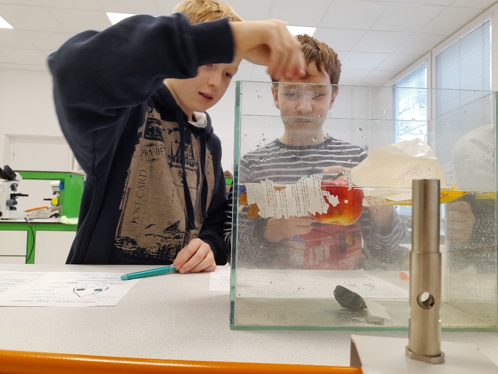 Dnešní projektový den pro děti ze Základní školy U Kostela v Moravské Třebové se nesl v duchu dvou základních živlů – vody a vzduchu. Žáci byli rozděleni do třech skupin, v rámci kterých si postupně vyzkoušeli aktivity na třech stanovištích.