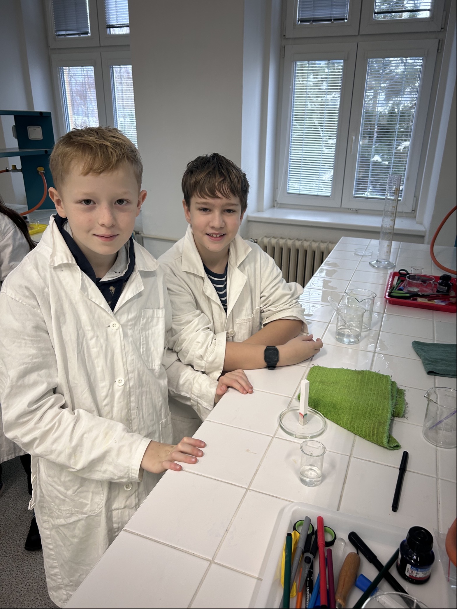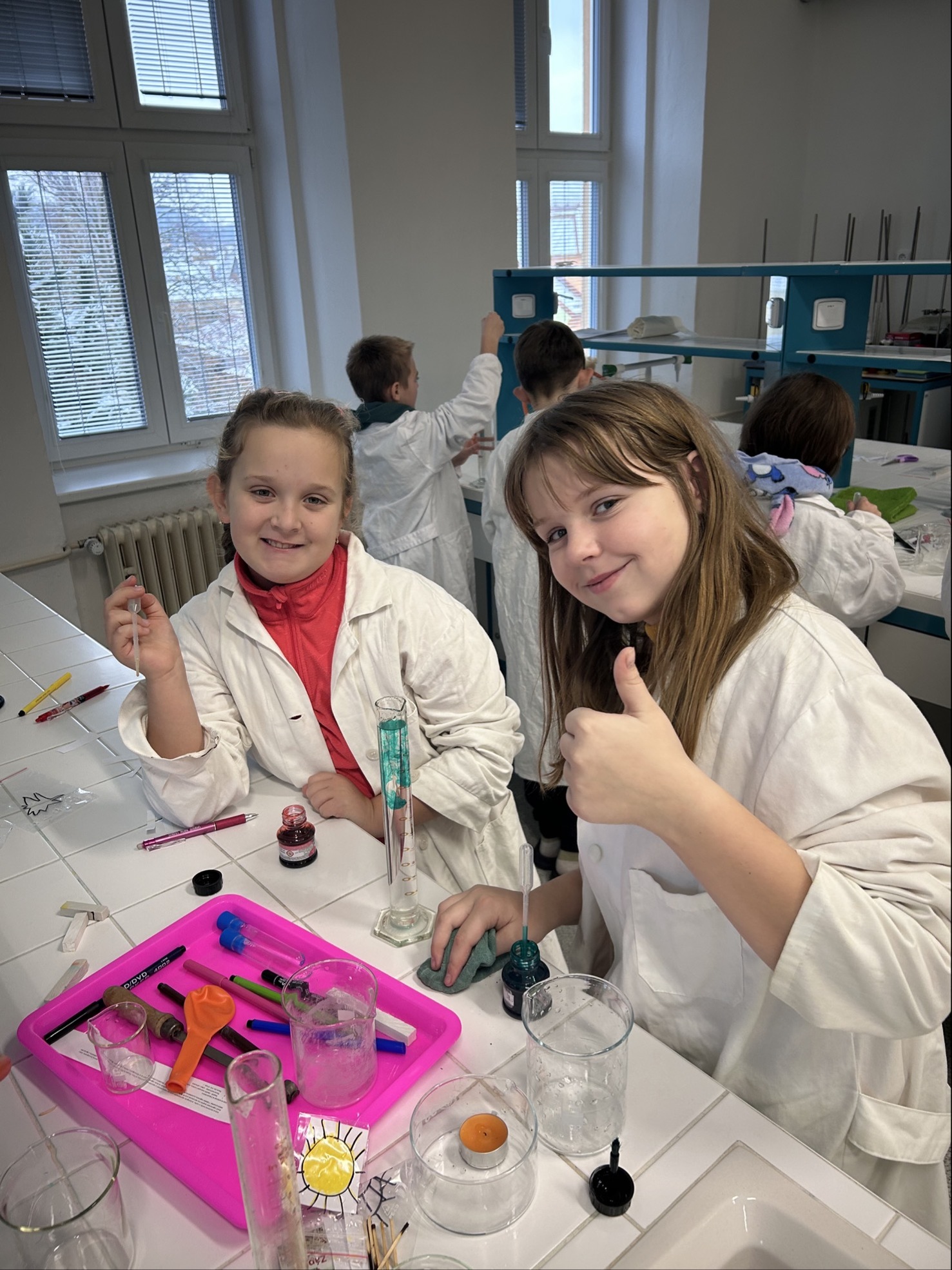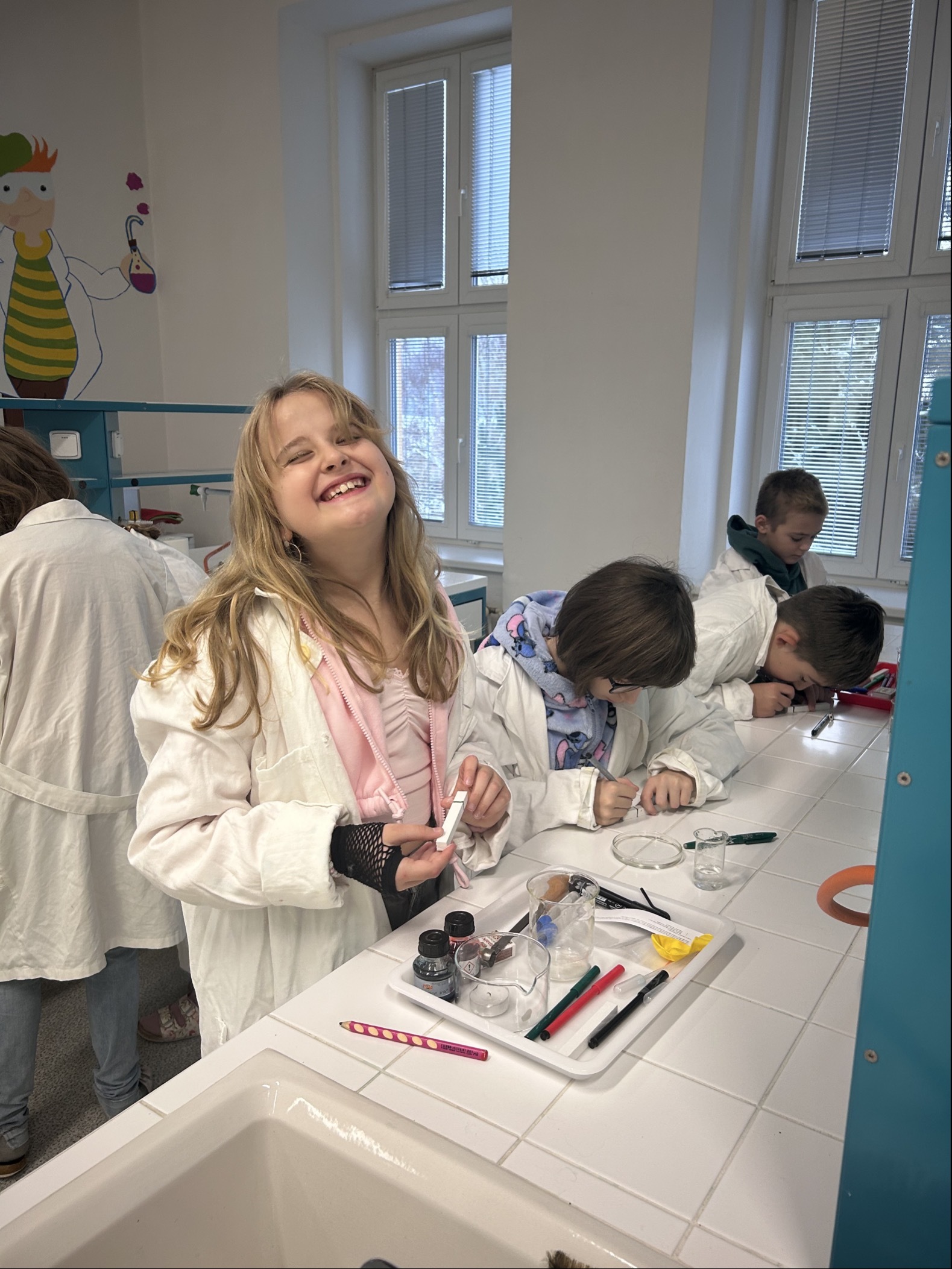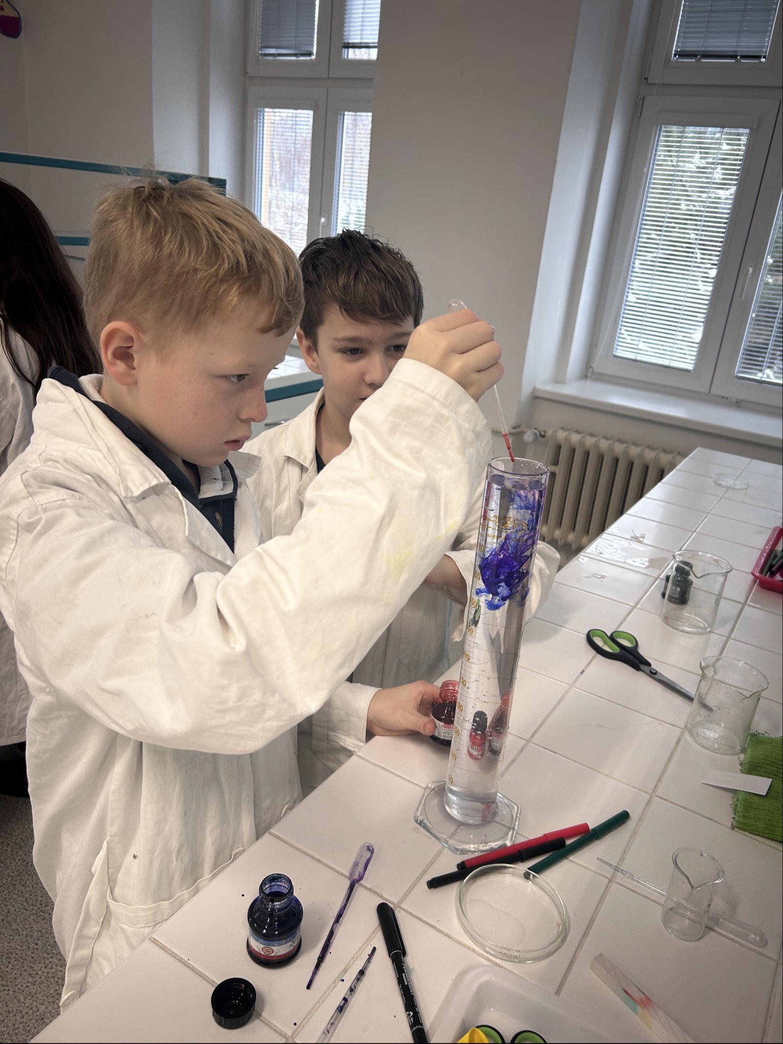 Věděli jste, že se dá malovat přímo na vodní hladinu? Díky povrchovému napětí to skutečně jde – a děti z našeho badatelského kroužku si to v pátek 27. 11. 2025 vyzkoušely na vlastní oči i ruce.