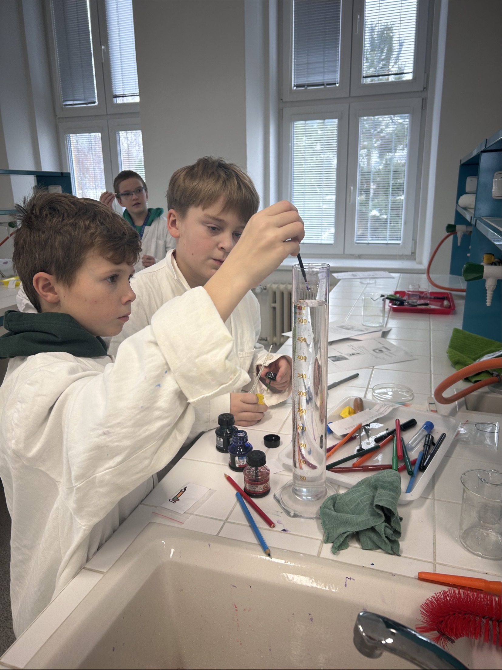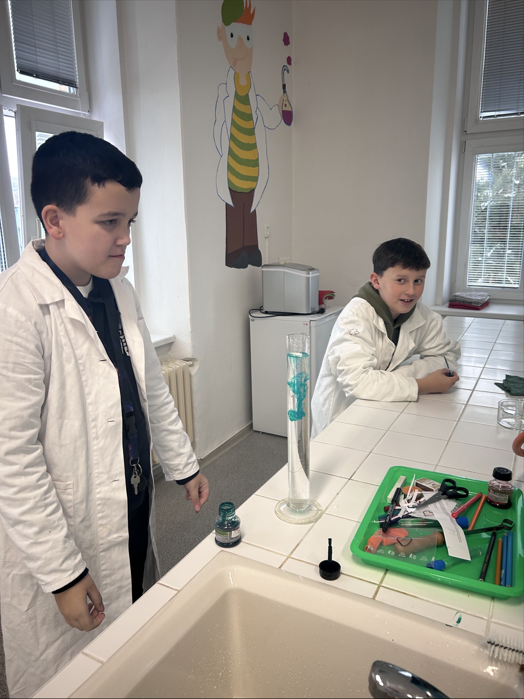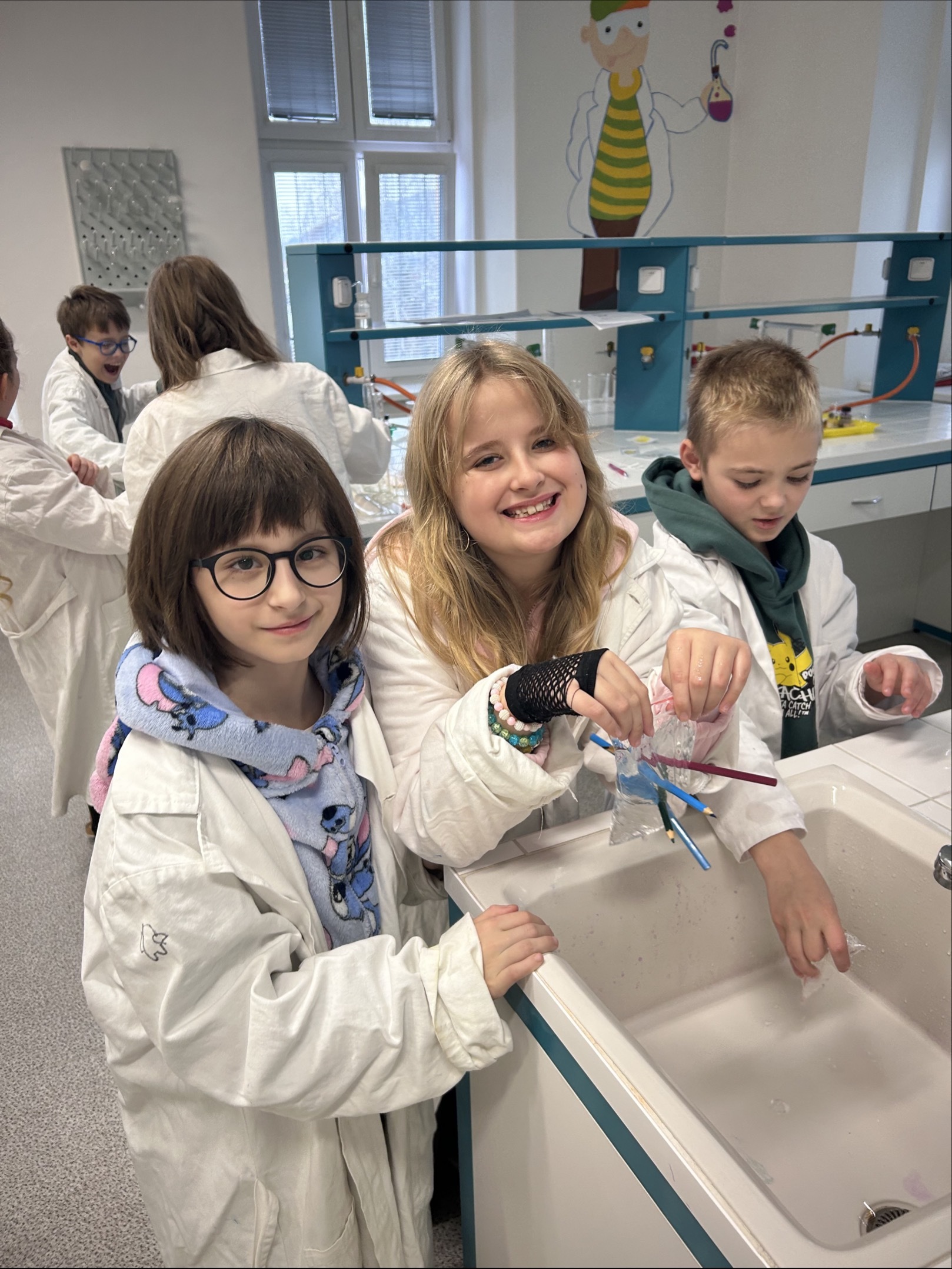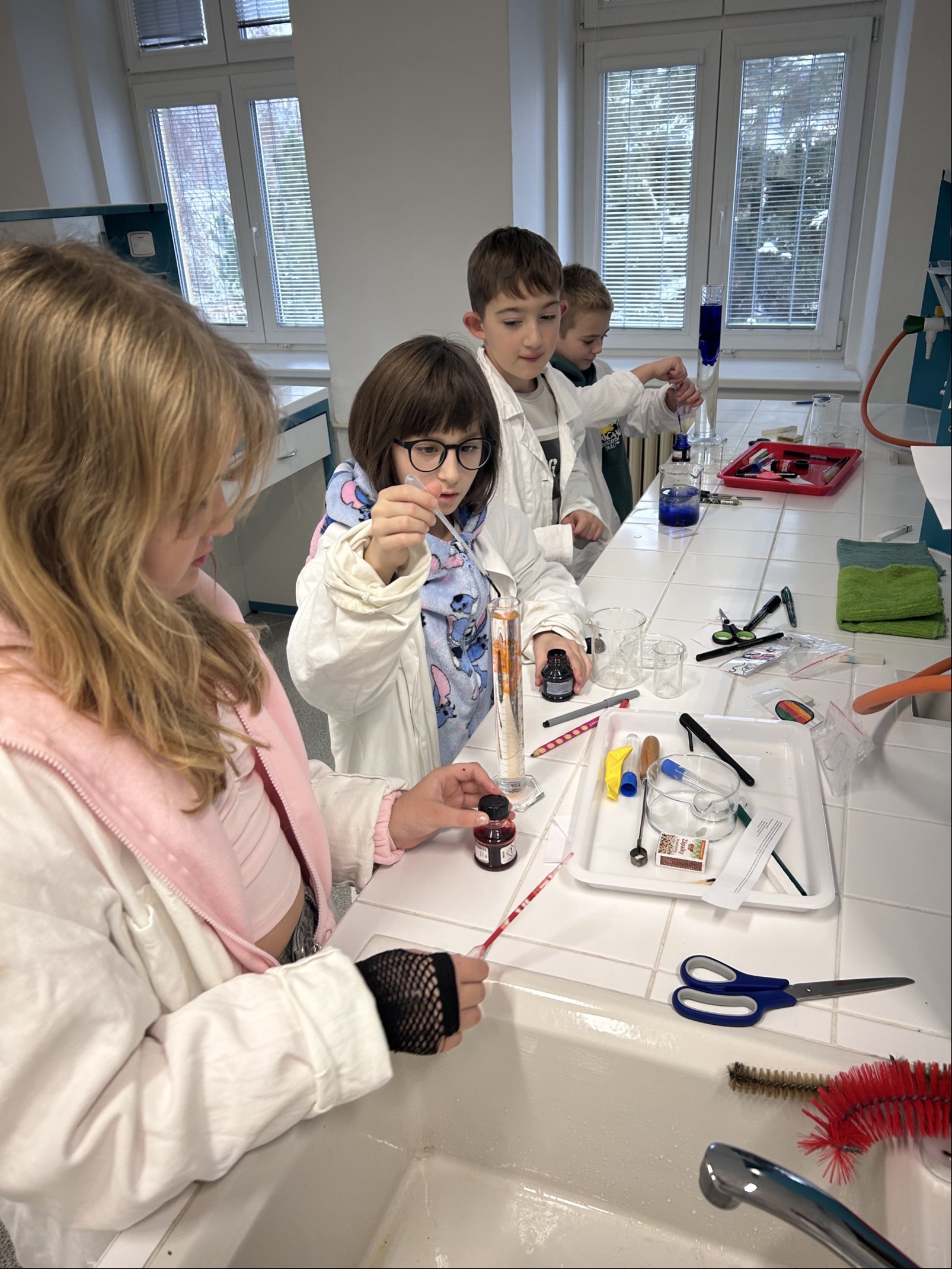 Věděli jste, že se dá malovat přímo na vodní hladinu? Díky povrchovému napětí to skutečně jde – a děti z našeho badatelského kroužku si to v pátek 27. 11. 2025 vyzkoušely na vlastní oči i ruce.