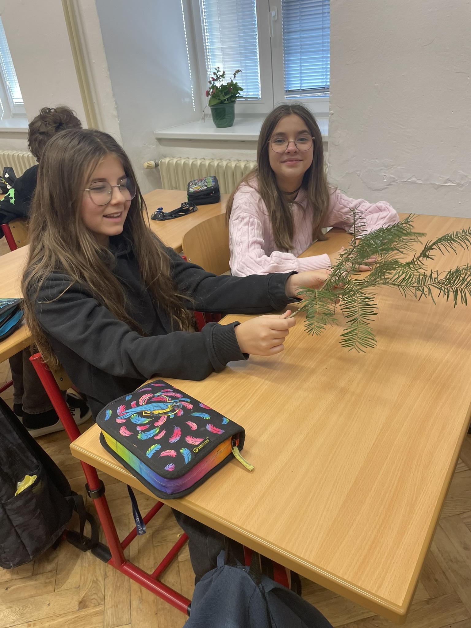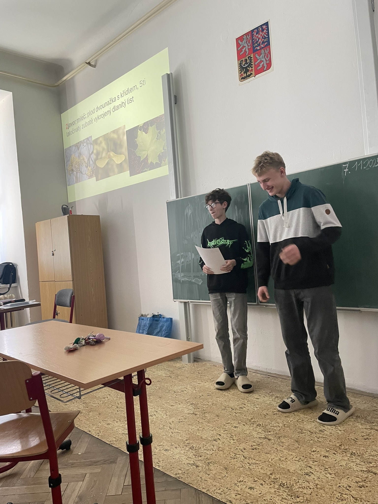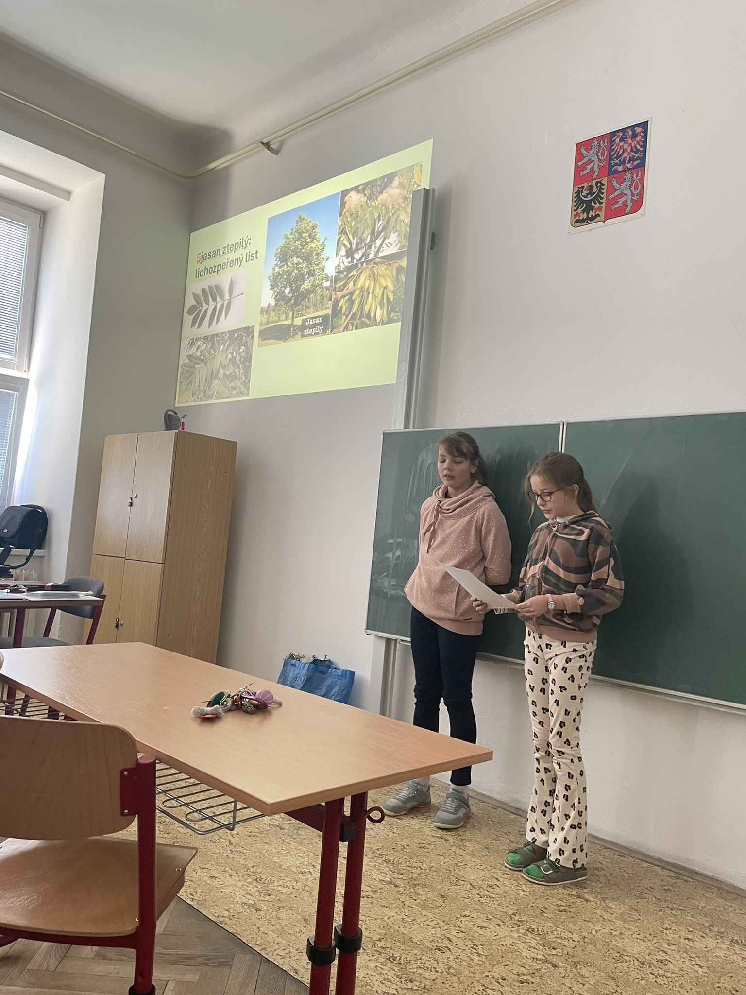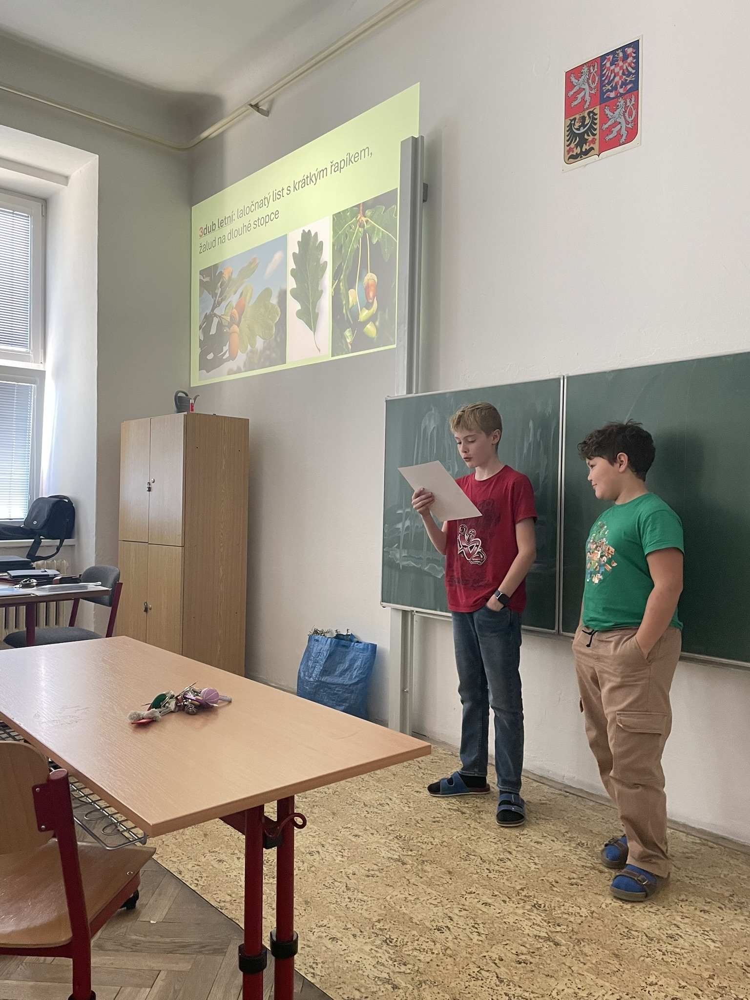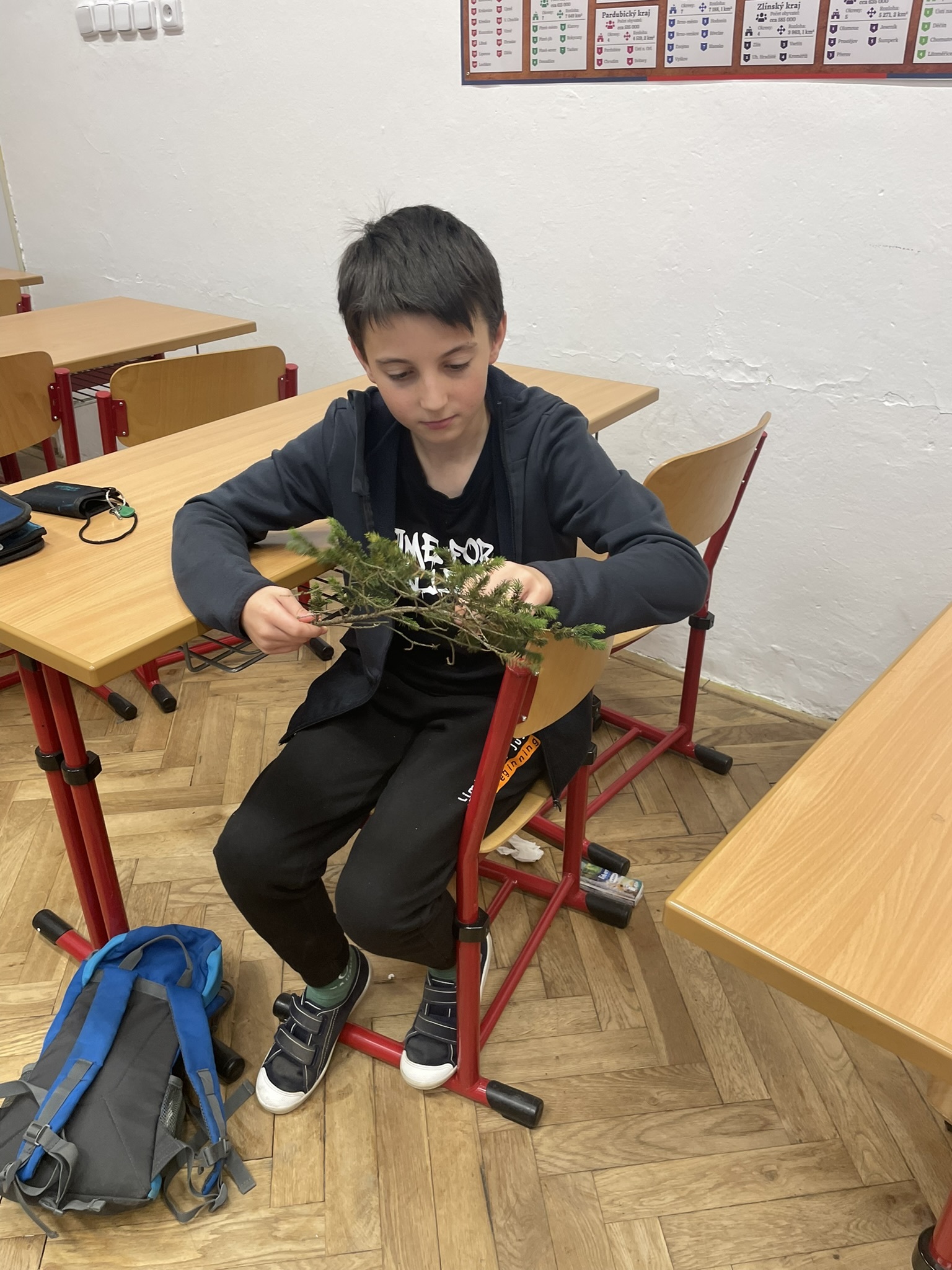 První část probíhala ve třídě, kde dvojice s pomocí tabletu vyplňovaly připravené pracovní listy o zástupcích našich listnatých stromů. Výsledky své práce poté prezentovaly před ostatními spolužáky. Následně se žáci učili s pomocí jednoduchého klíče určovat naše zástupce jehličnatých dřevin. Druhá část programu pokračovala v parku za muzeem, kde nechyběly hravé úkoly – štafetový kvíz, živé pexeso a bingo. Den jsme zakončili ve třídě hrou „čelovka“ a výrobou jednoduchého stromečku.