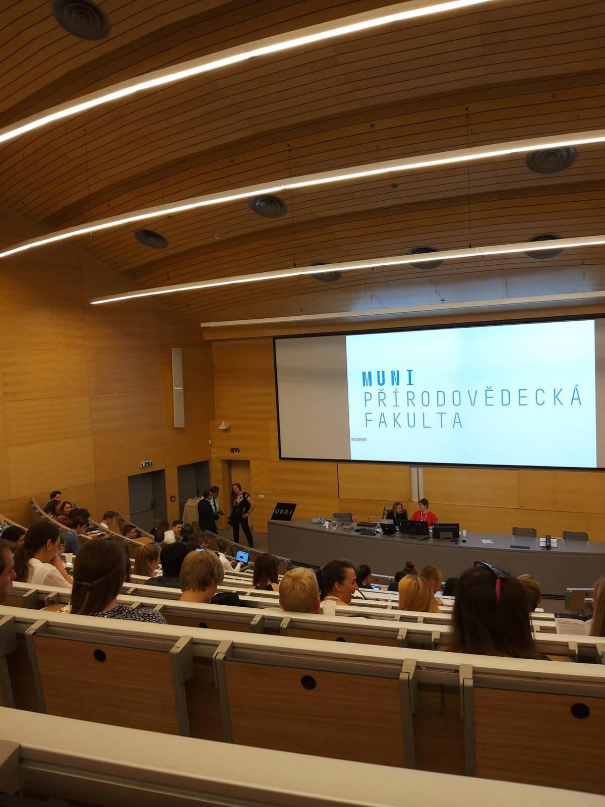 Cesta na konferenci proběhla skoro bez problémů, až na nedostatečně promyšlené nasednutí do autobusu, který mířil přímo na druhou stranu Brna, než byl náš cíl. Nicméně přesně na čas jsme se ocitli před budovou Masarykovy univerzity. Po nahlášení našich příjmení jsme převzali uvítací taštičku, která obsahovala propagační předměty od místního časopisu "INTERFACE" přes kompletní program se seznamem s přednáškami až po oficiální certifikát o účasti. O pár kroků vedle byla aula, kde započala celá konference, a to úvodním slovem děkana přírodovědecké fakulty a také samotných organizátorů. Následovaly tři obsáhlé projevy o vědě, podnikání a také o tom, abychom dělali věci, které nás mohou do budoucna posunout.