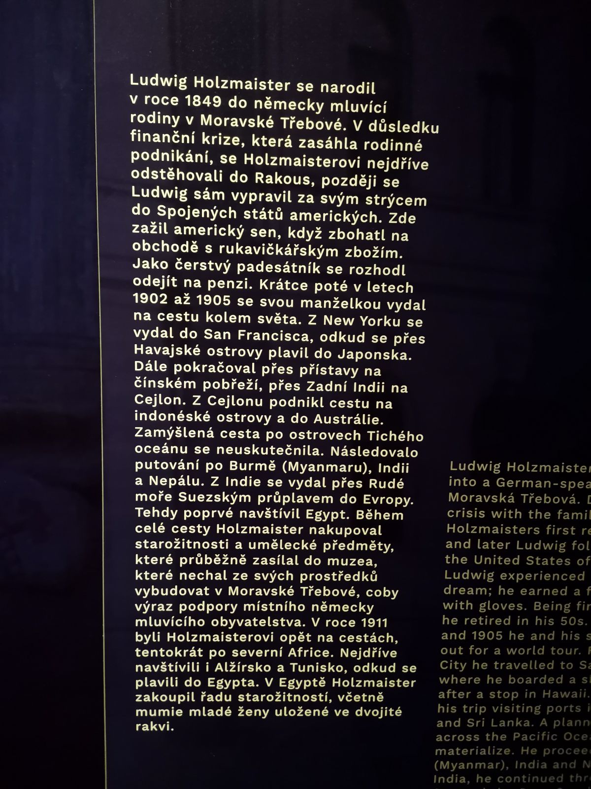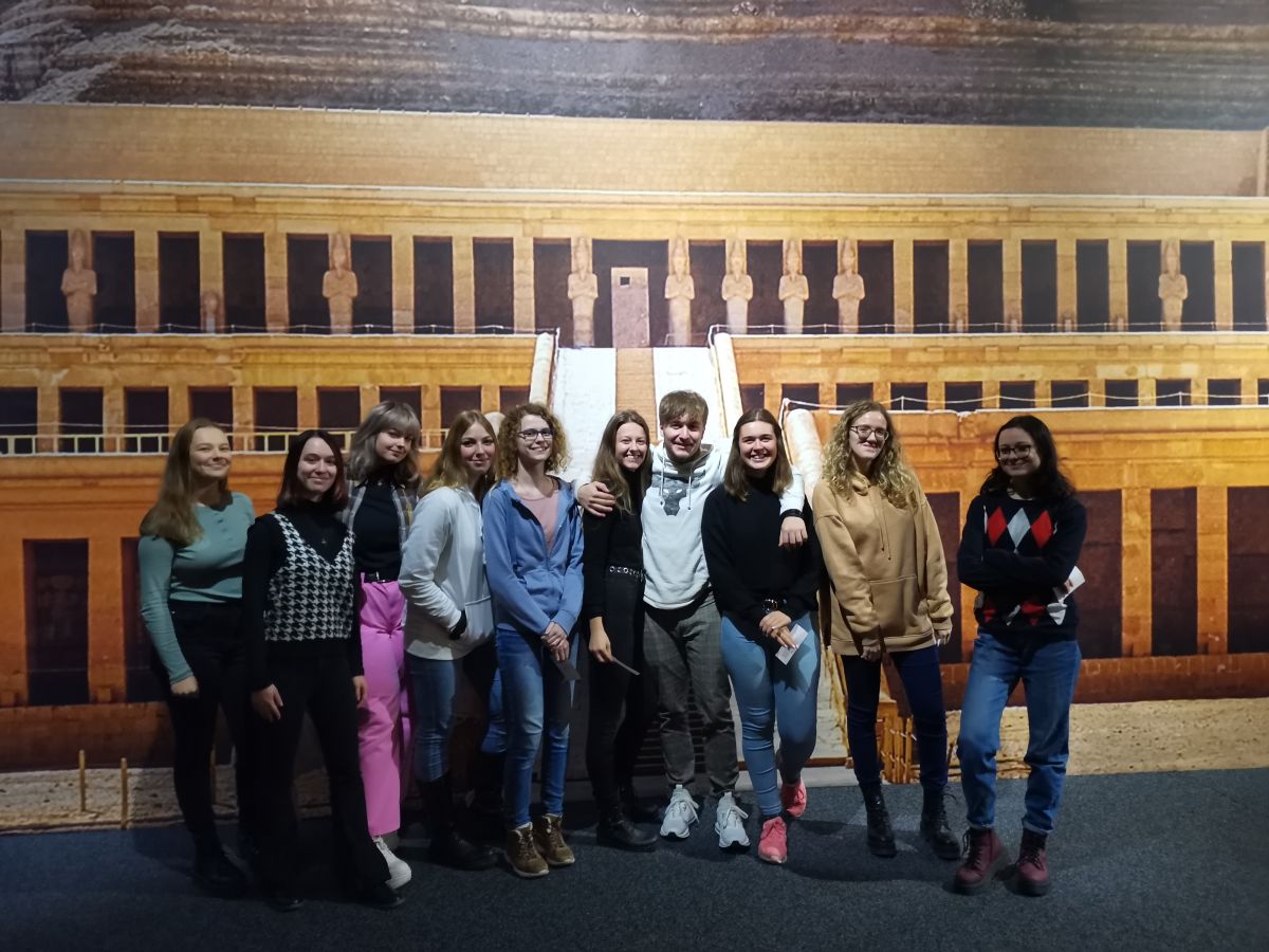 Maturanti z řad absolventů semináře dějiny umění se v pondělí 14. 11. zúčastnili prohlídky unikátní výstavy Tutanchamon - jeho hrobka a poklady. Tuto výstavu již po celém světě navštívilo více než 6 milionů návštěvníků a těší se mimořádnému ohlasu. Na brněnské Výstaviště zamířilo deset našich studentů se zájmem o umění, aby mohli obdivovat více než 1000 exponátů, grafik a videí. Neporušená Tutanchamonova hrobka byla objevena v listopadu 1922, mohli jsme si tedy během  výstavy jen představovat, jaké to asi bylo přesně před sto lety, kdy Howard Carter představil ohromenému světu svůj senzační nález. Závěrečná část výstavy byla věnována odkazu moravskotřebovského rodáka Ludwiga Holzmaistera, který se významným způsobem zasadil o zpopularizování egyptologie u nás. Bylo velmi milé na výstavě světového formátu zahlédnout i stopy našeho města.
